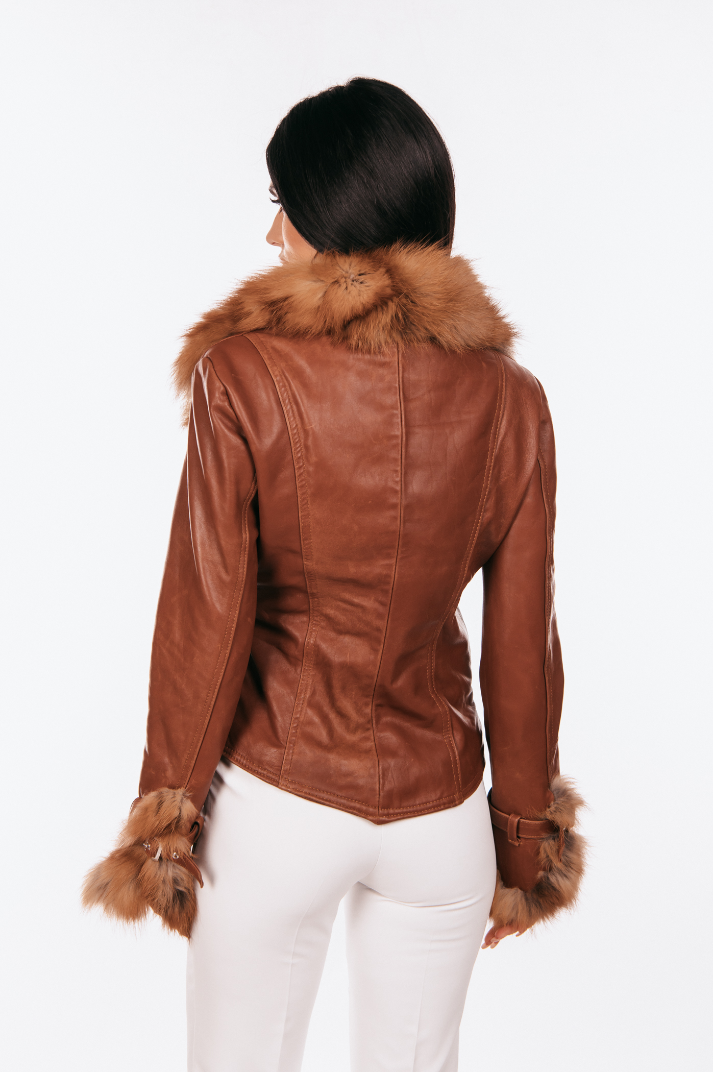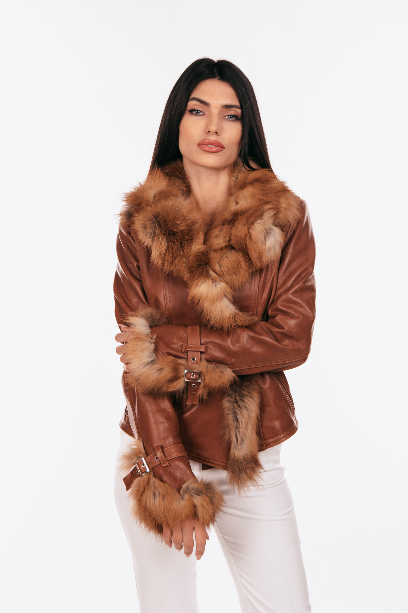 Μπουφάν από δέρμα και γούνα αλεπούς σε χρώμα κανέλας