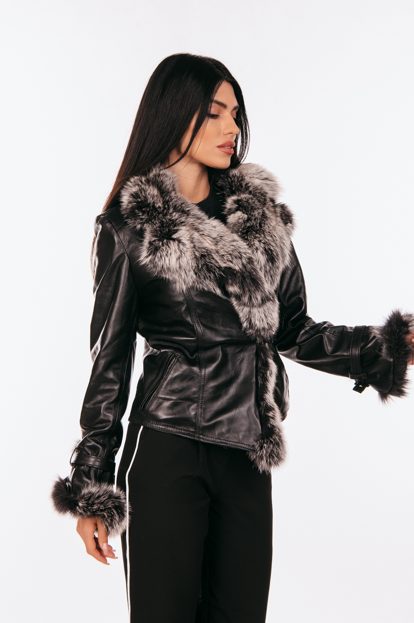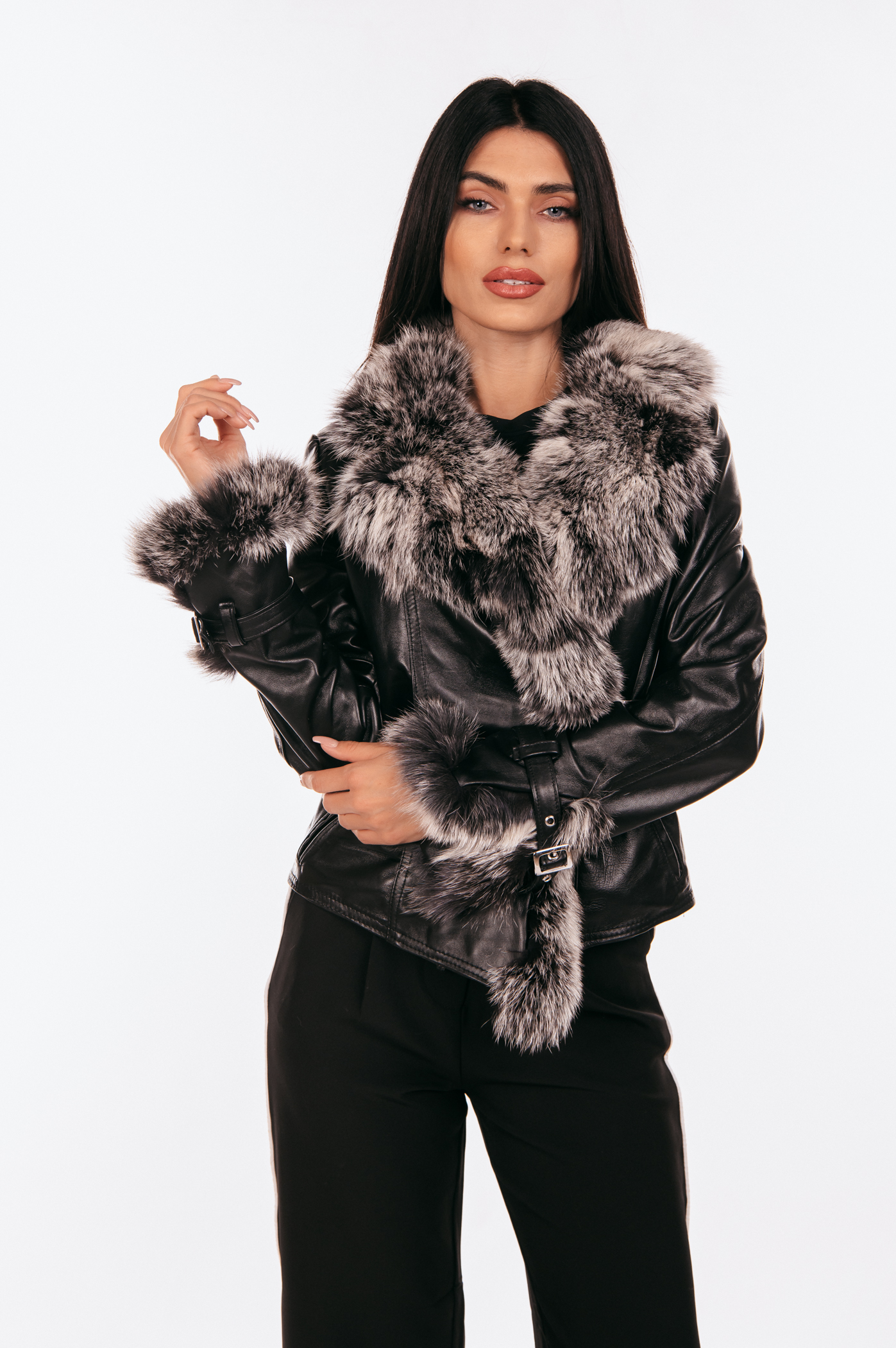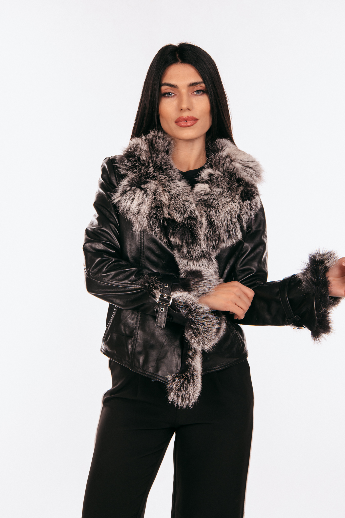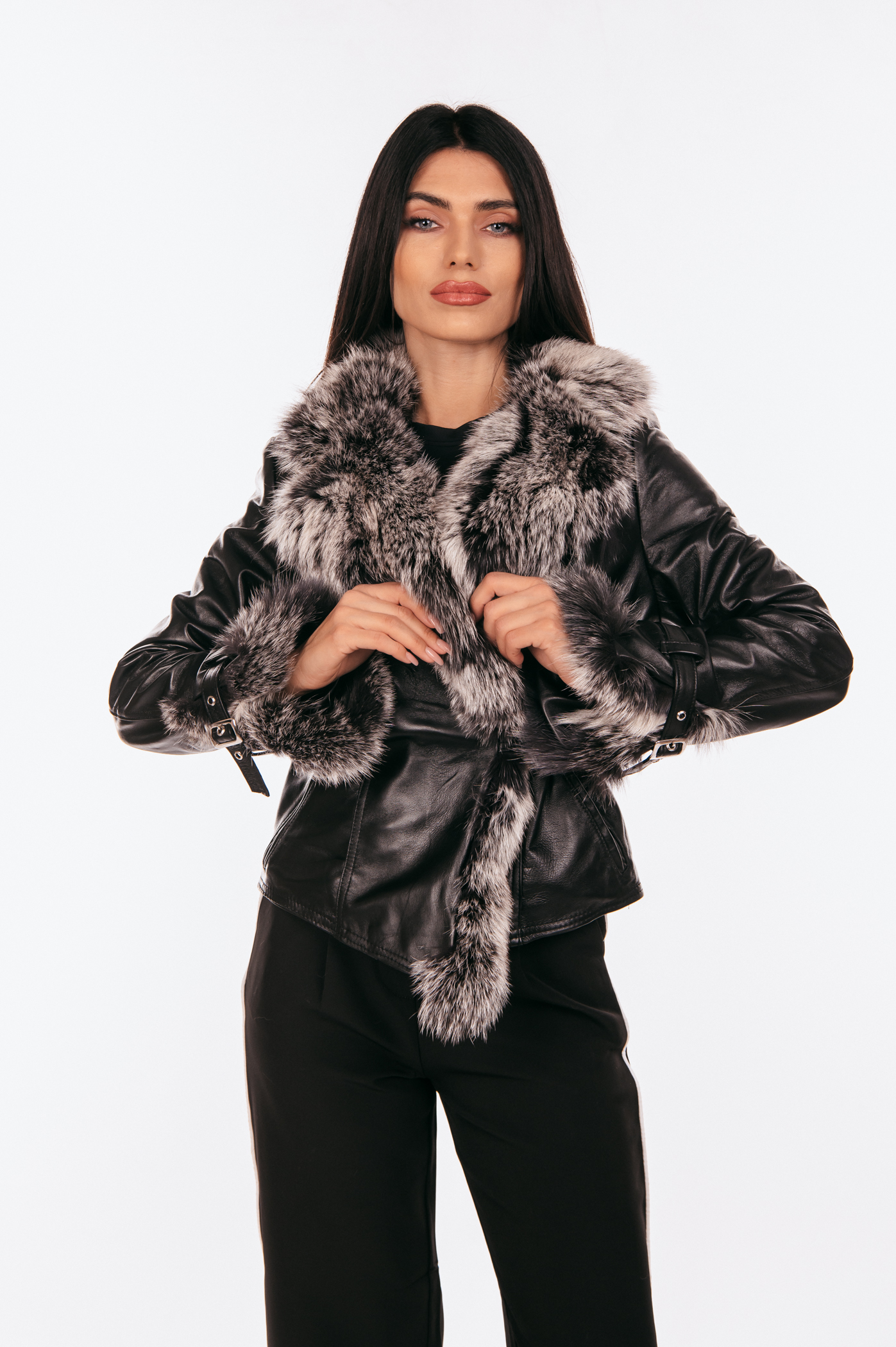 Δερμάτινο τζάκετ σε μαύρο χρώμα με γούνα αλεπούς