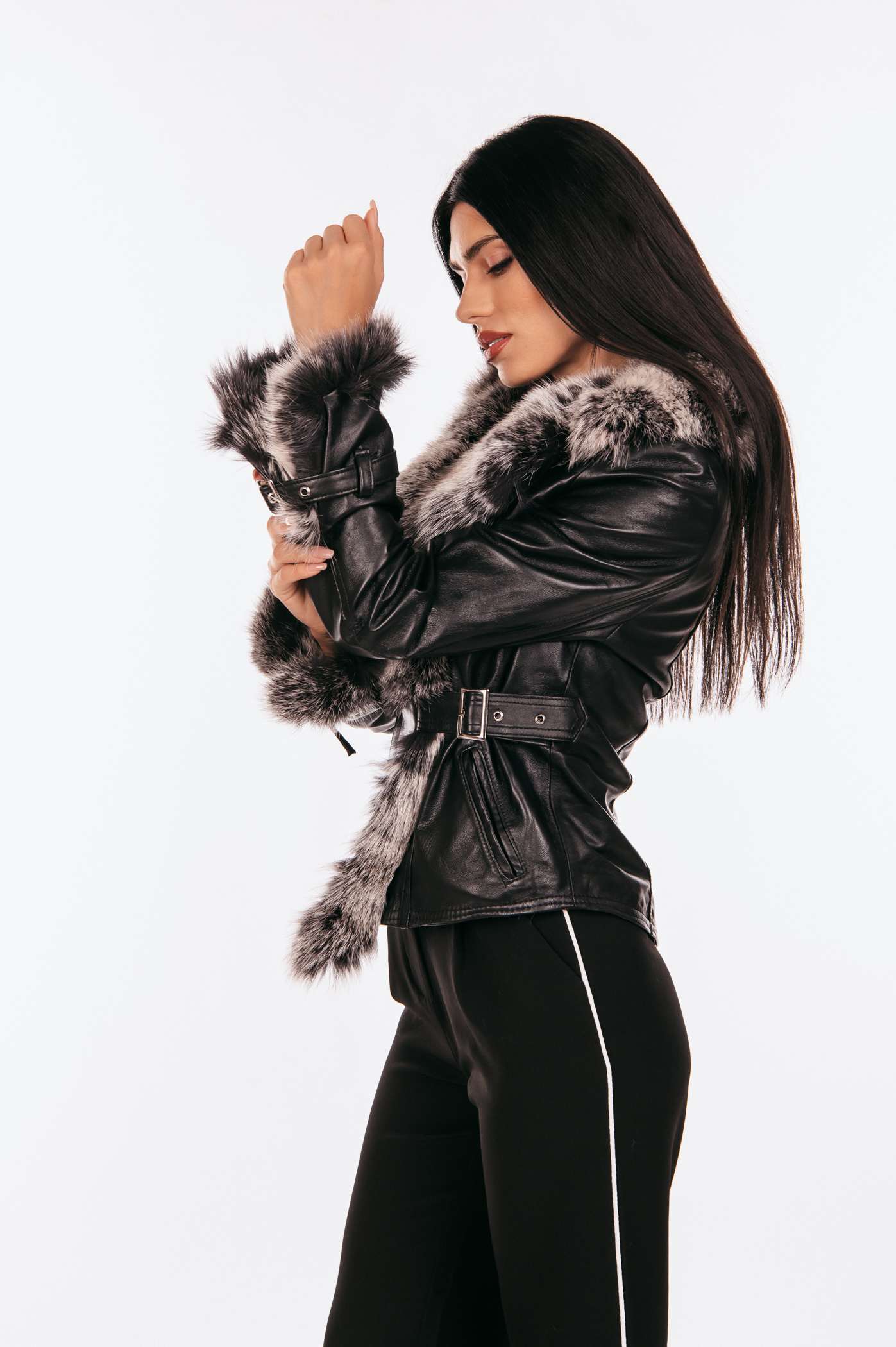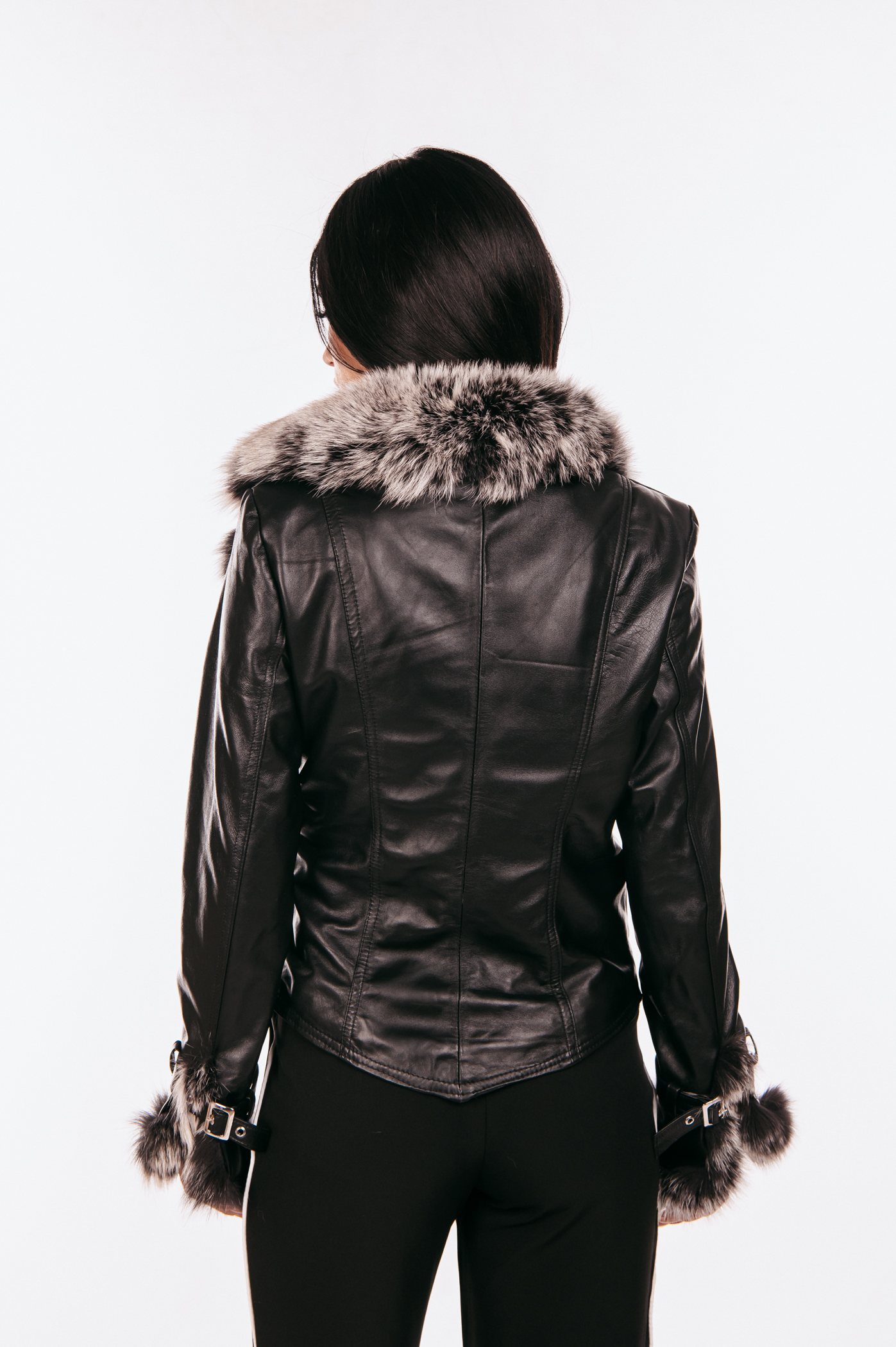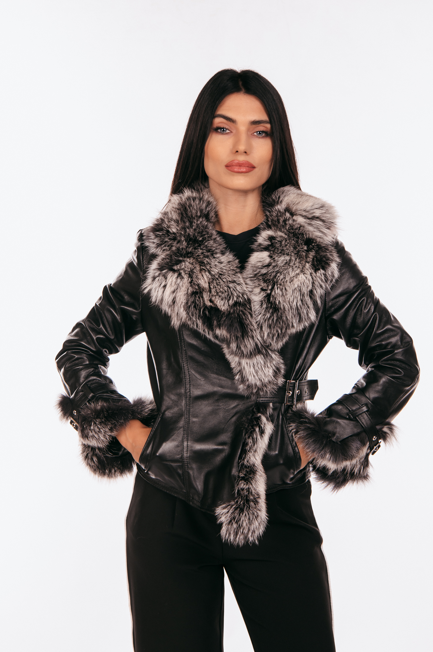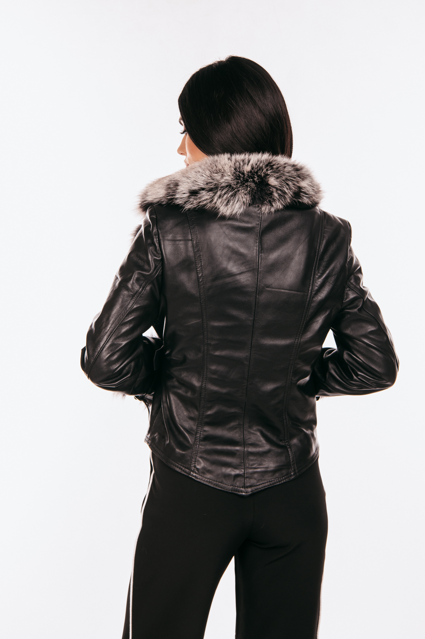 Δερμάτινο τζάκετ σε μαύρο χρώμα με γούνα αλεπούς