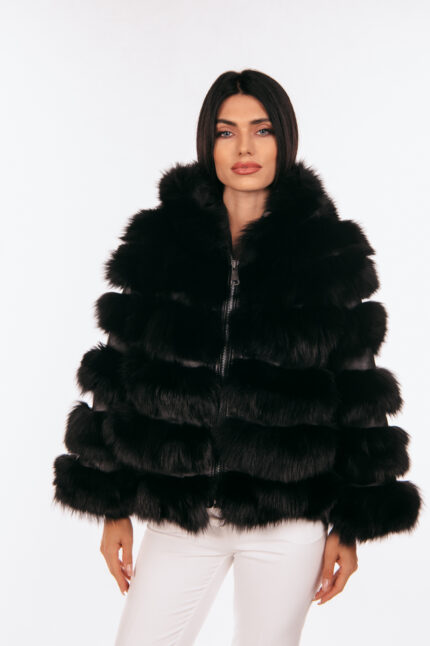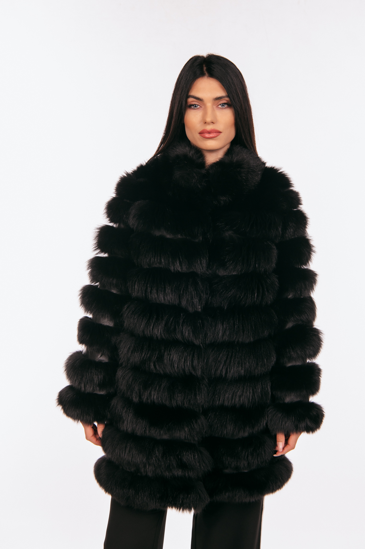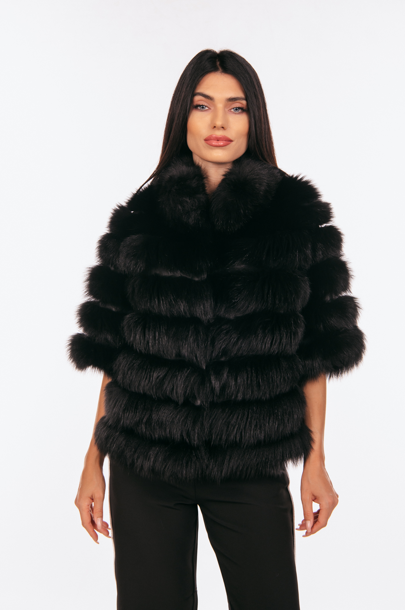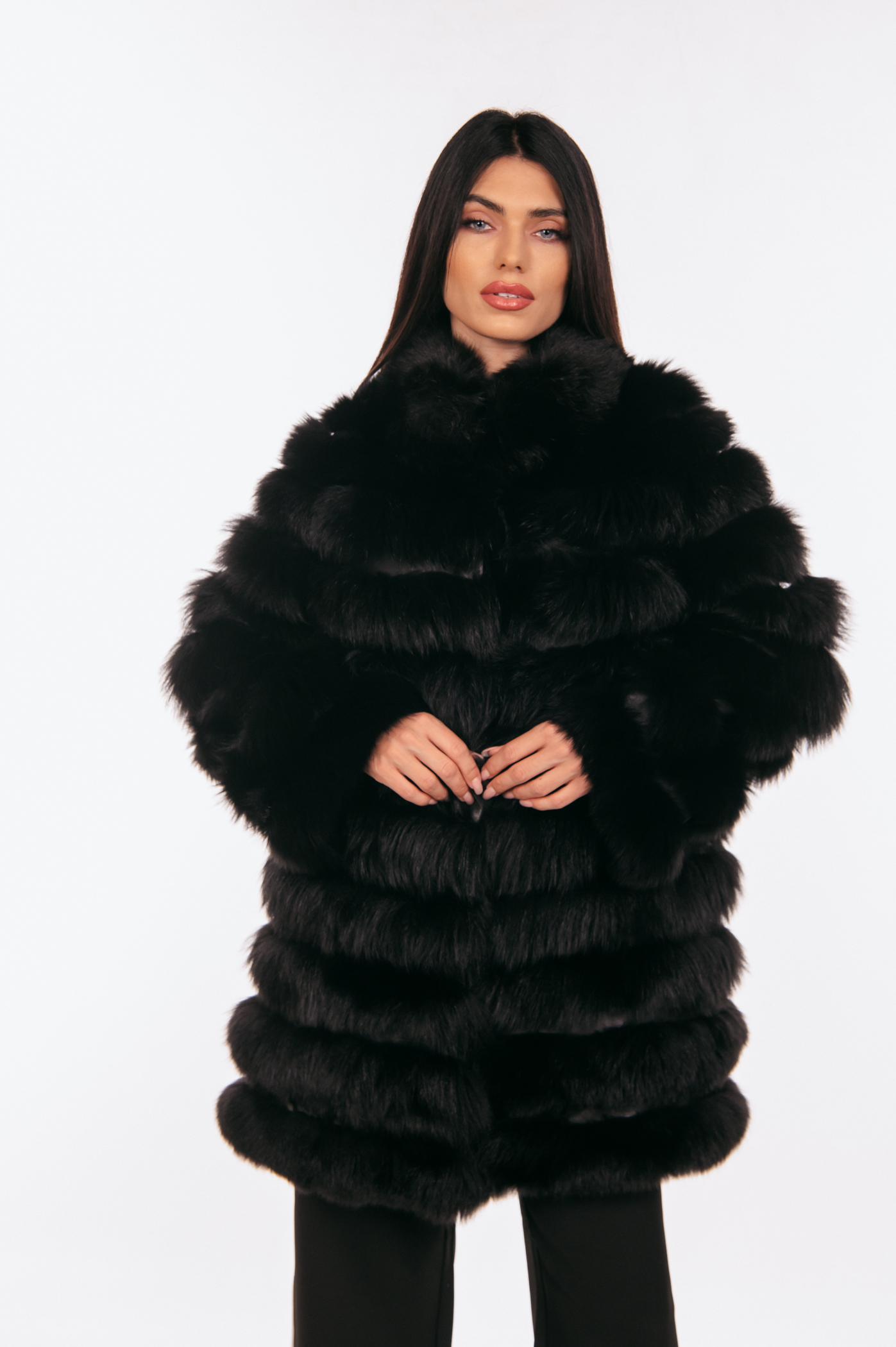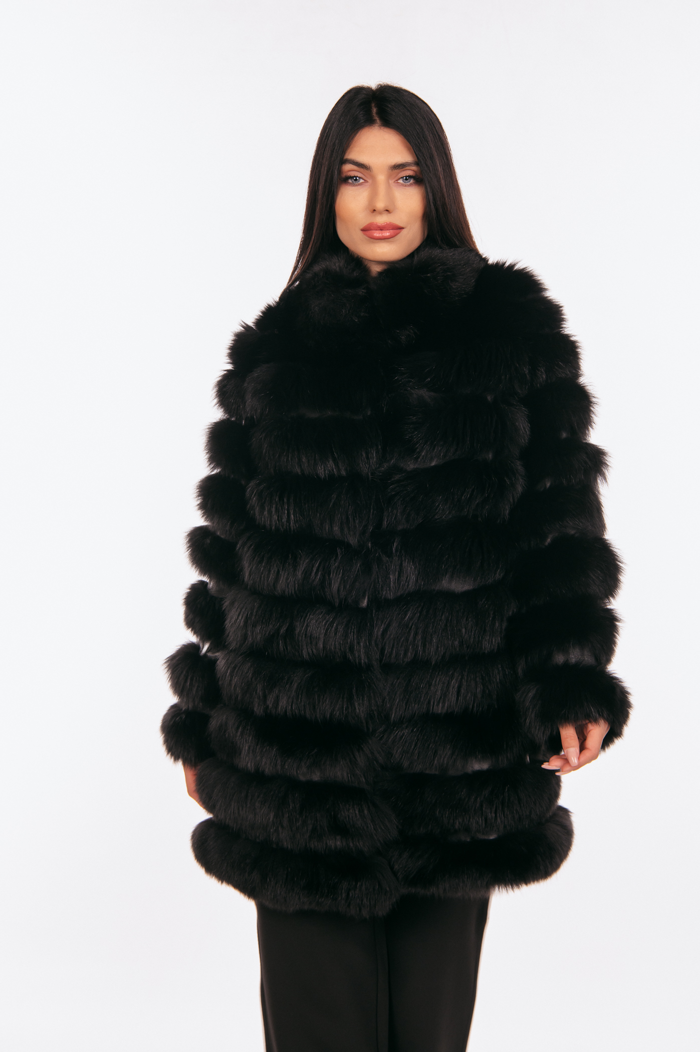 Μπουφάν από μαύρη γούνα αλεπούς με αποσπώμενα μέρη
