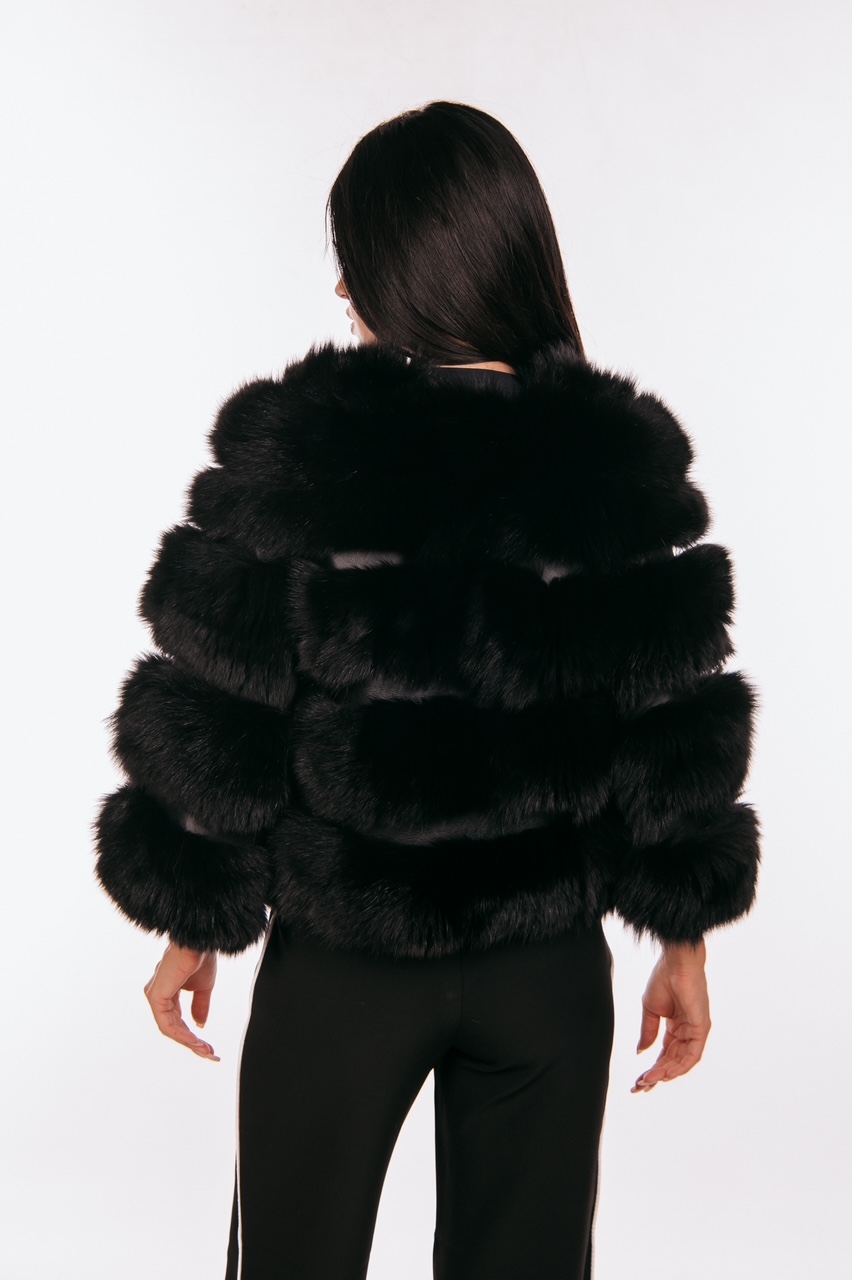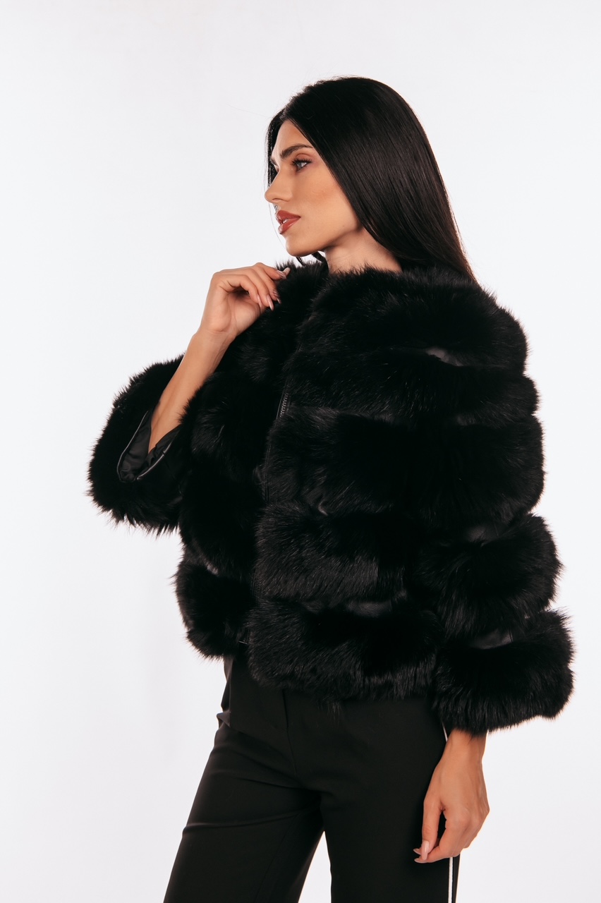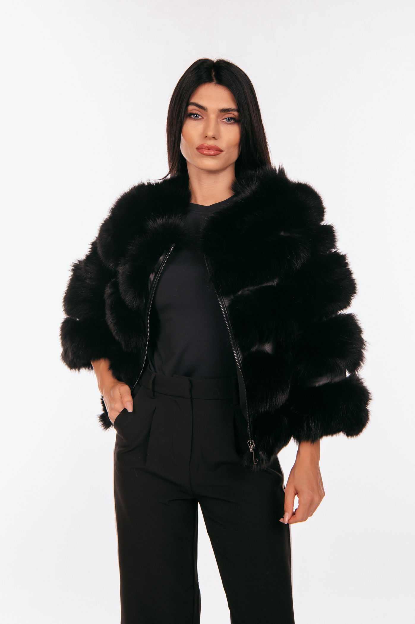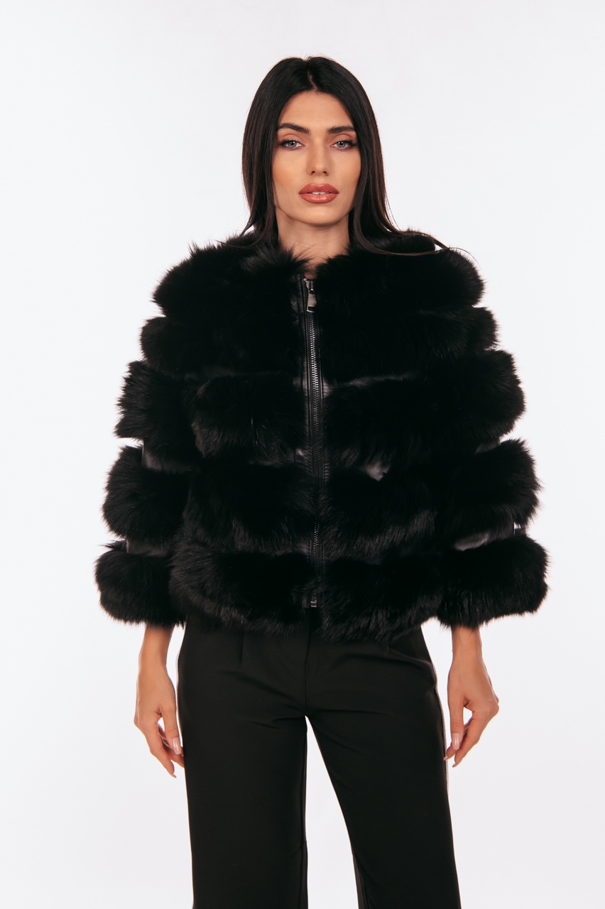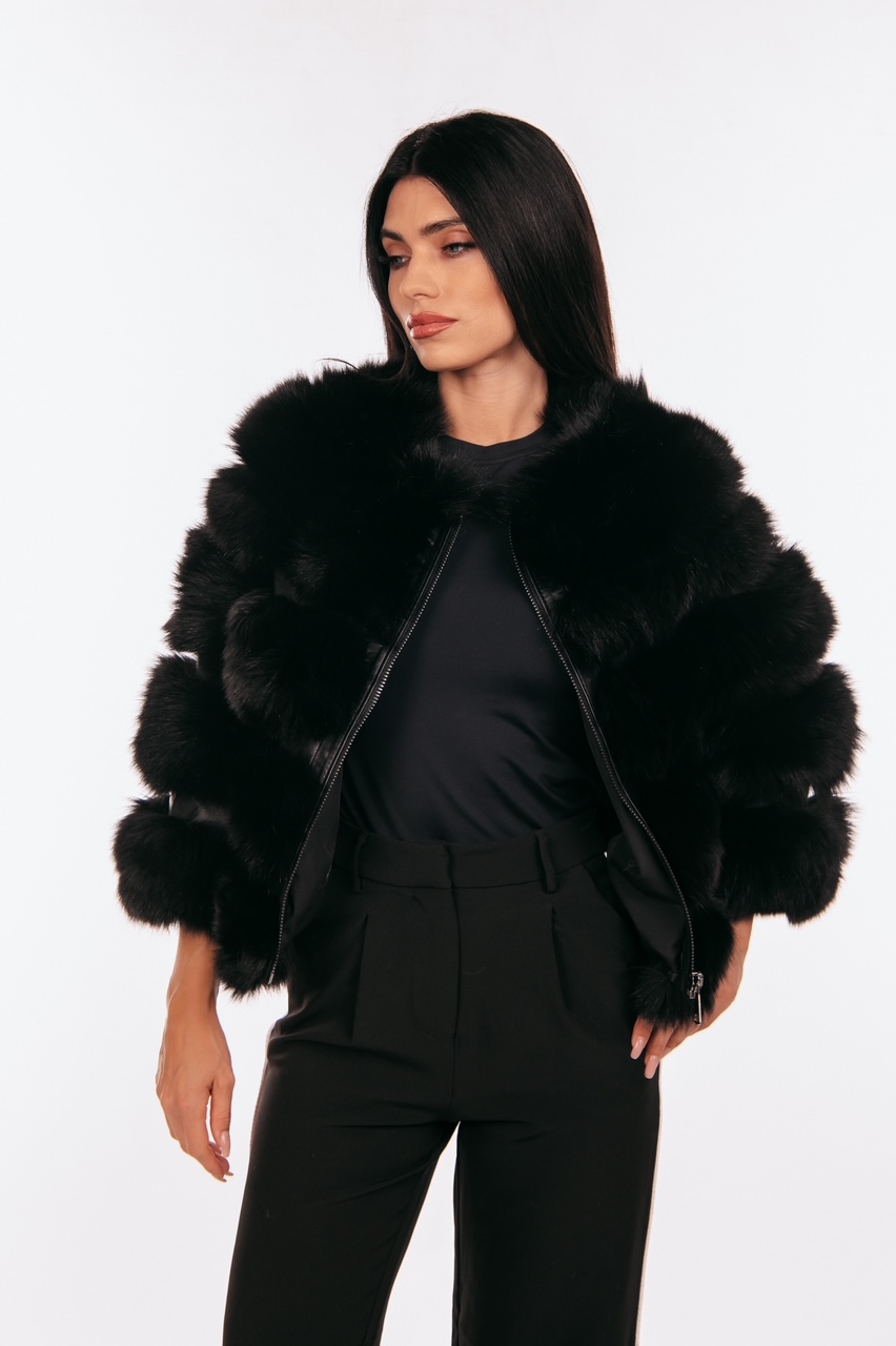 • Μαύρο μπουφάν από γούνα αλεπούς