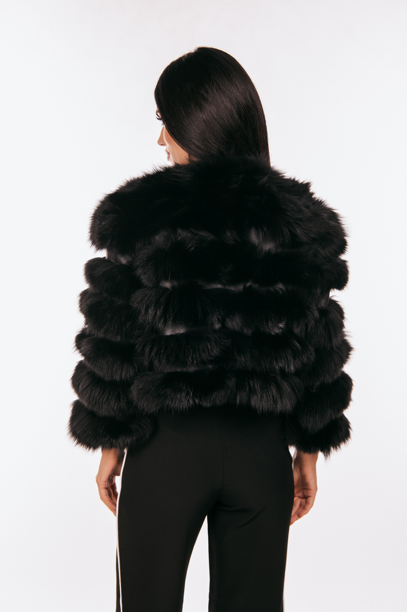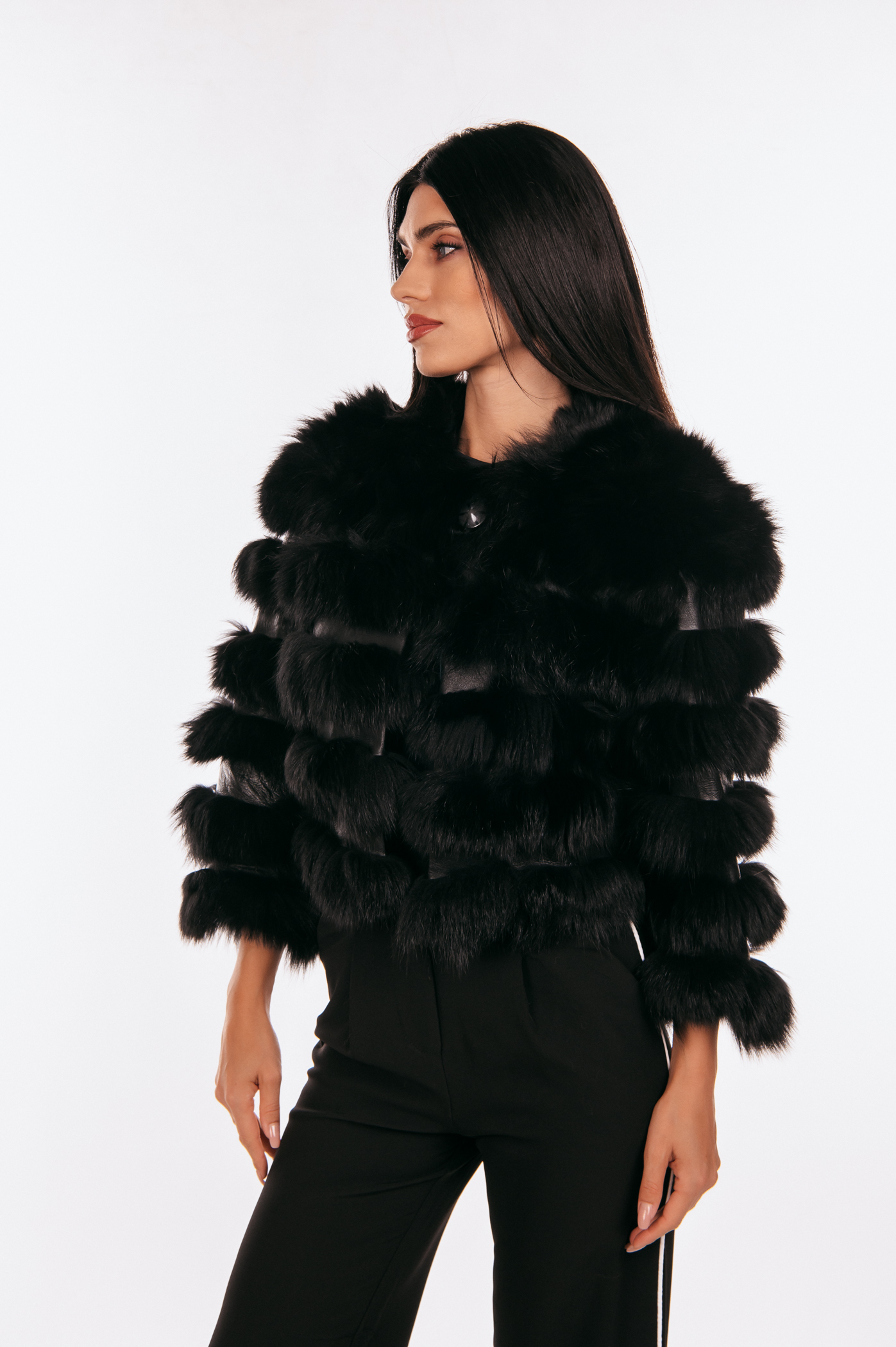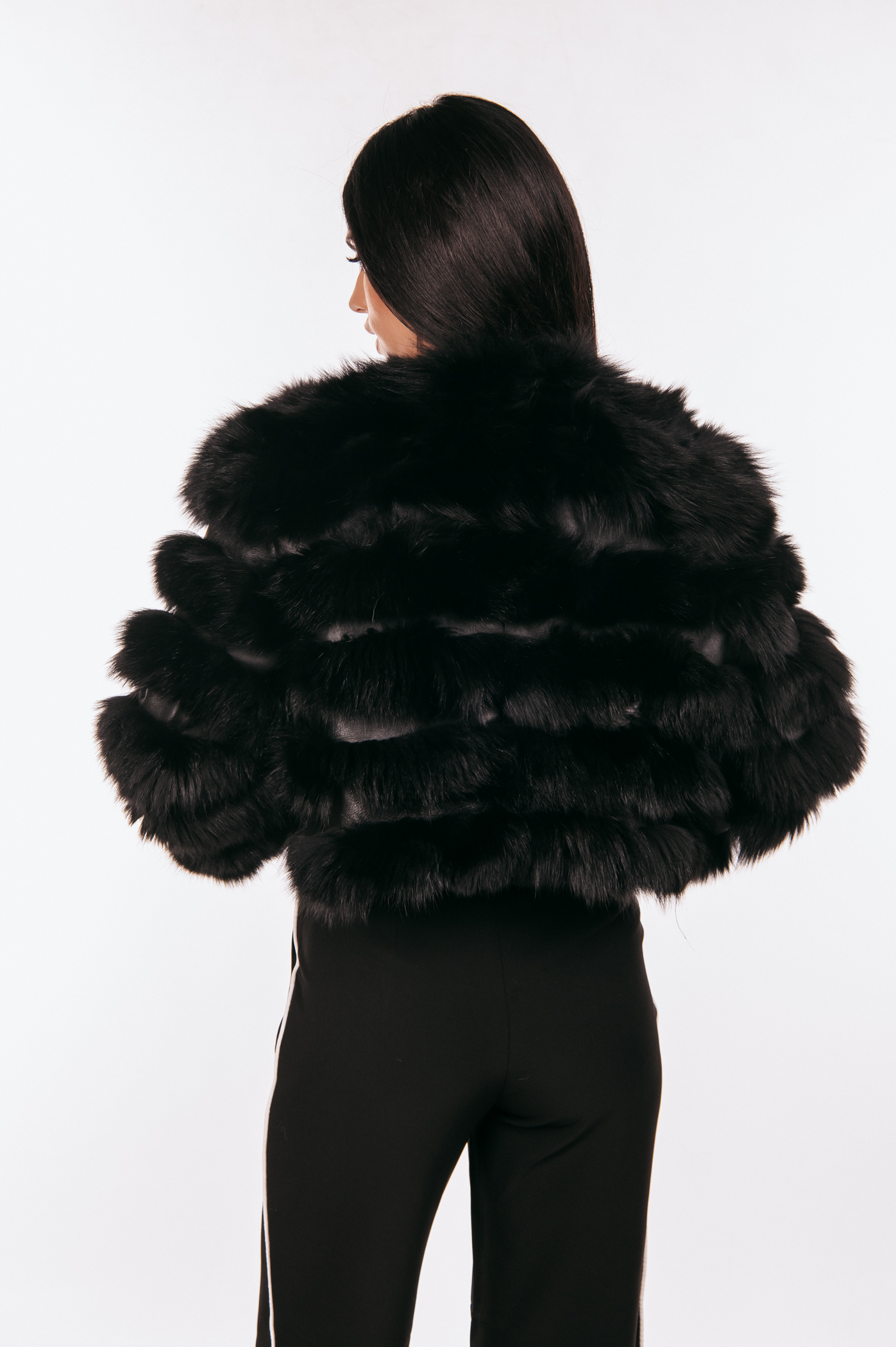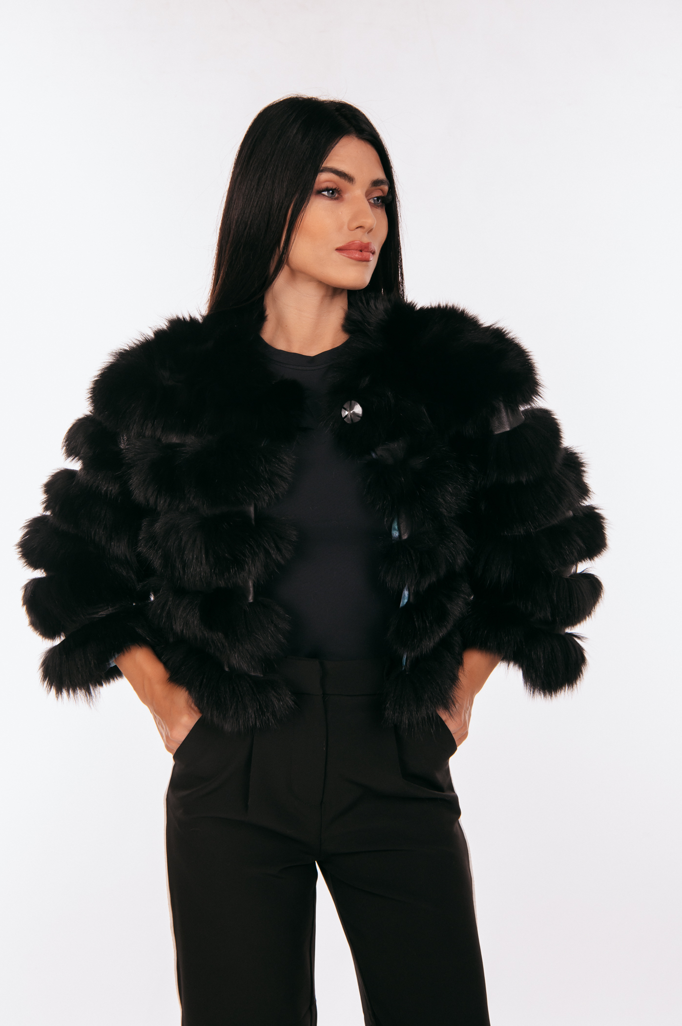 Κοντό τζάκετ από μαύρη γούνα αλεπούς