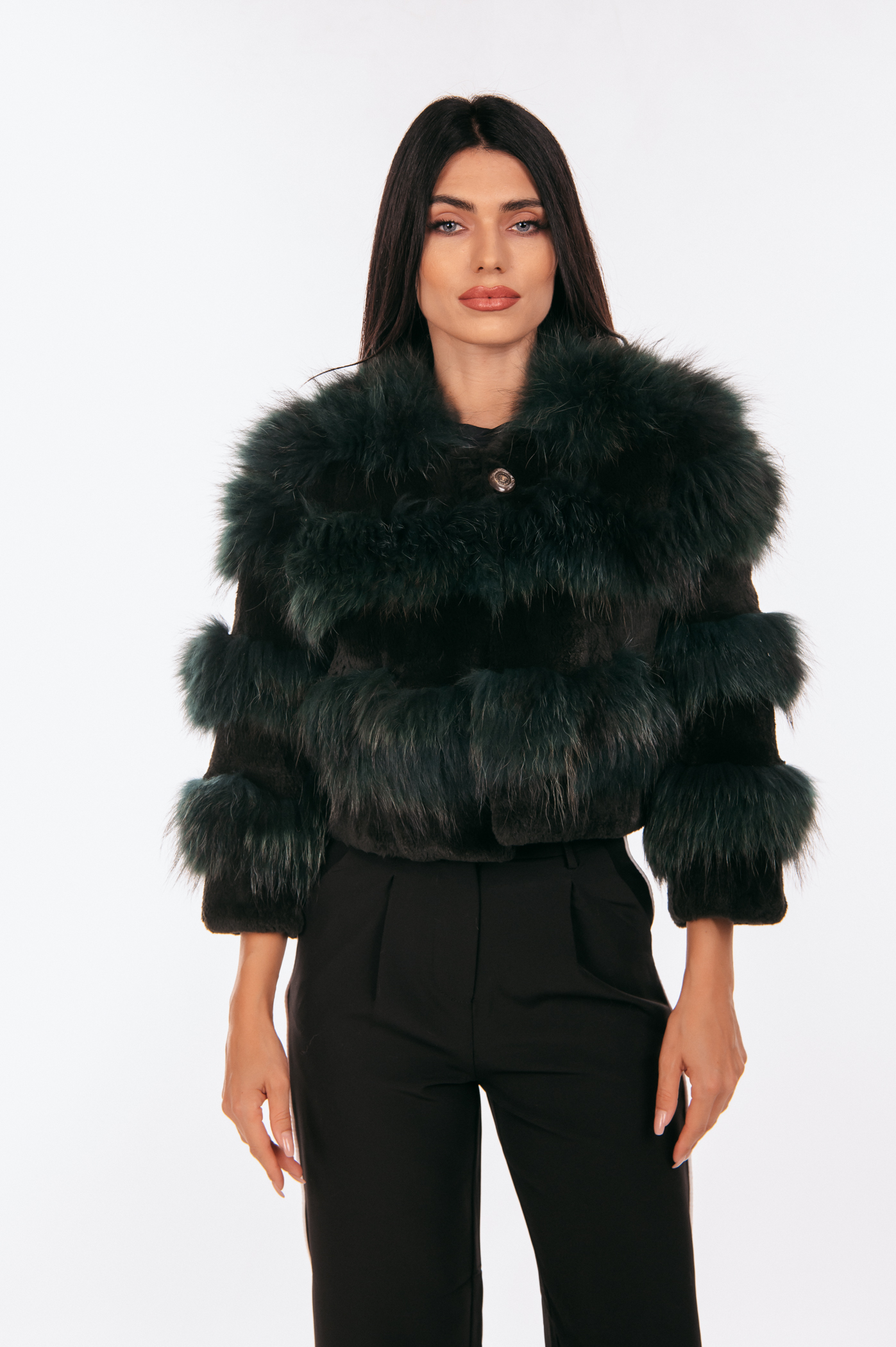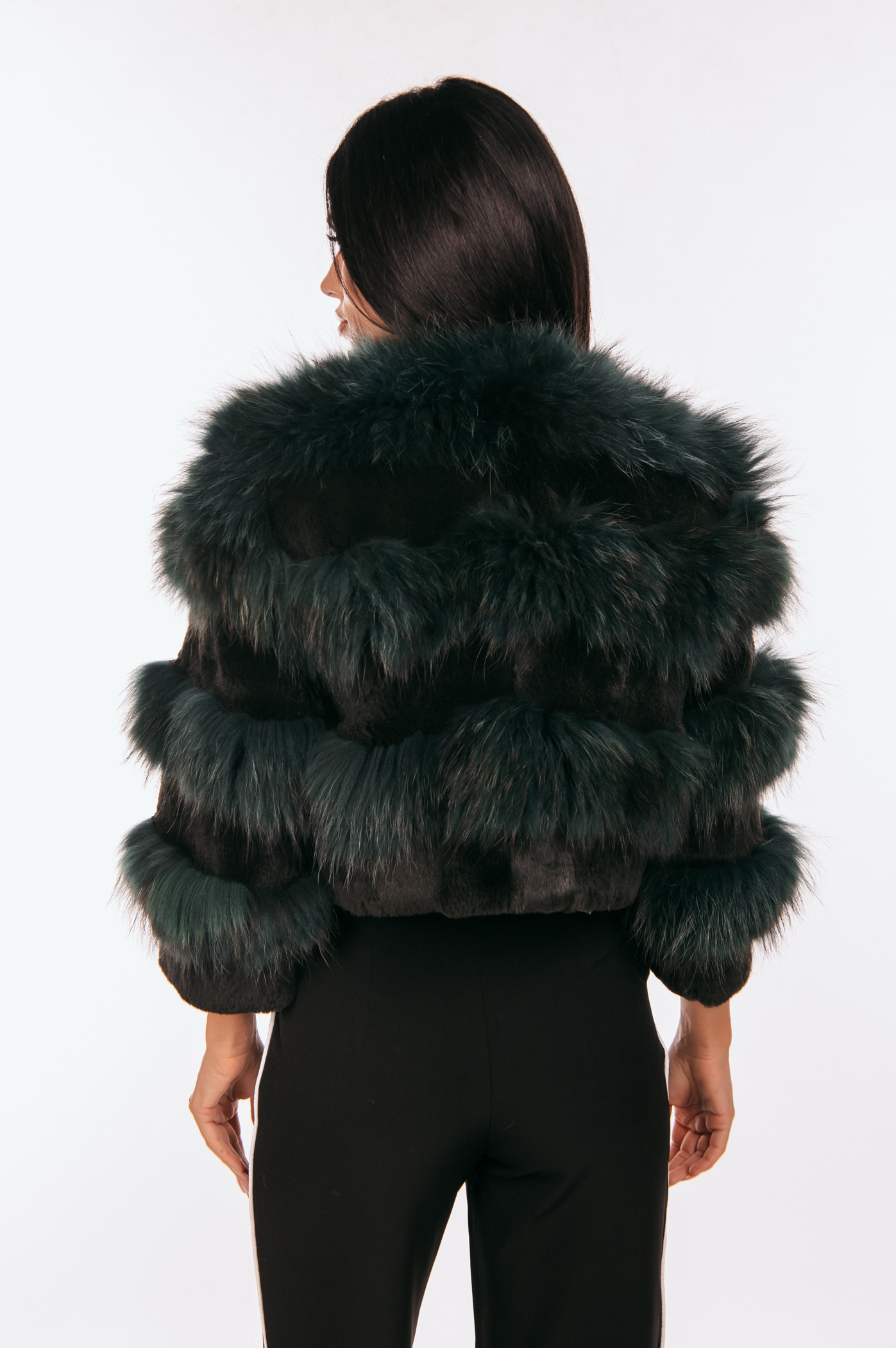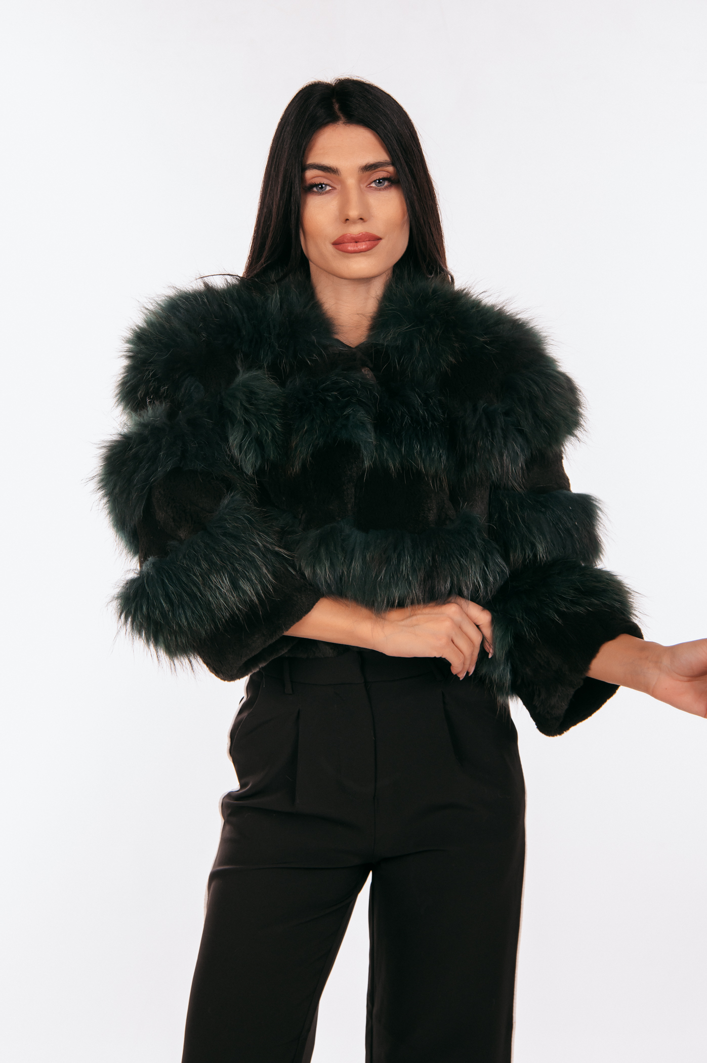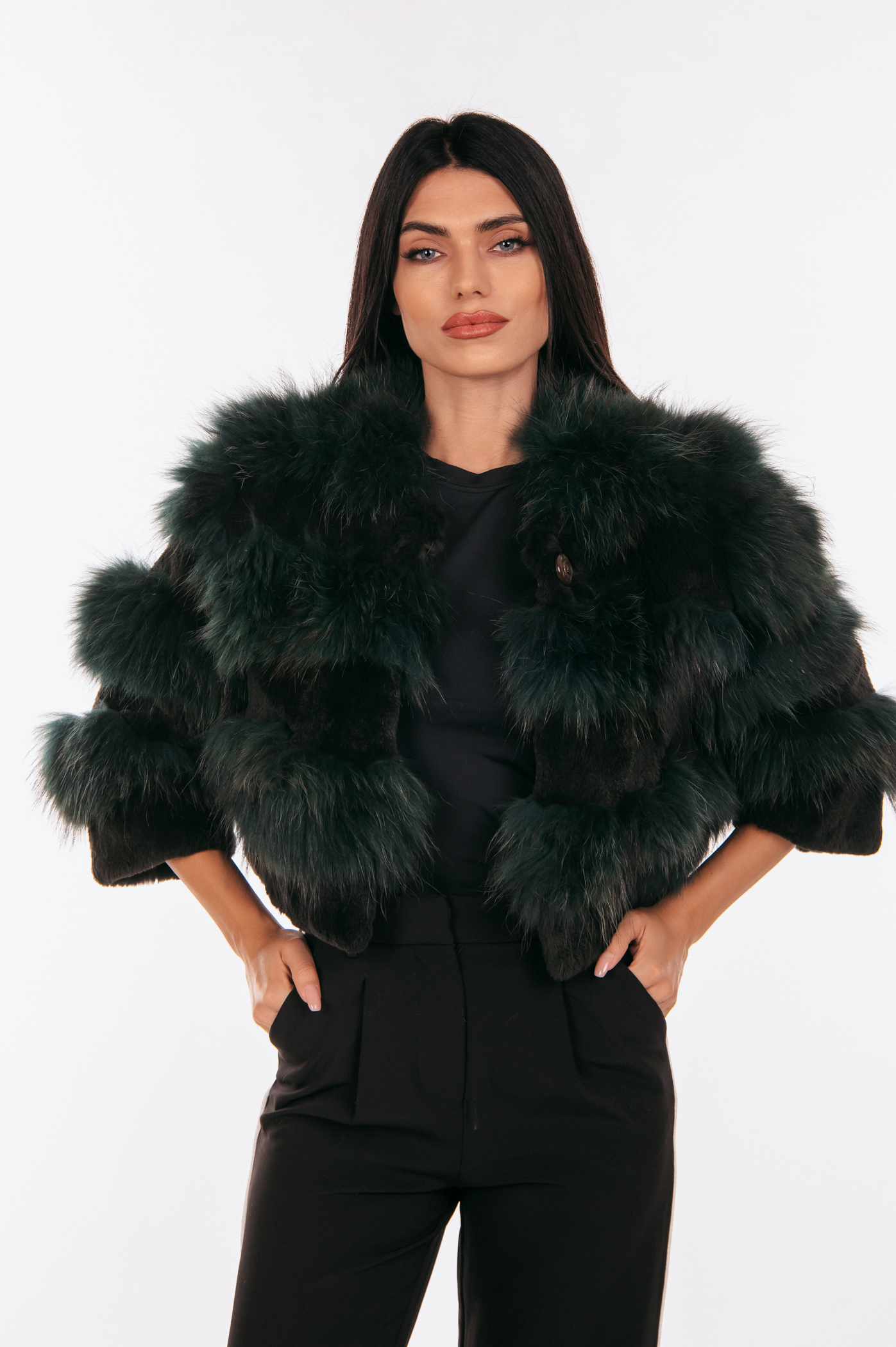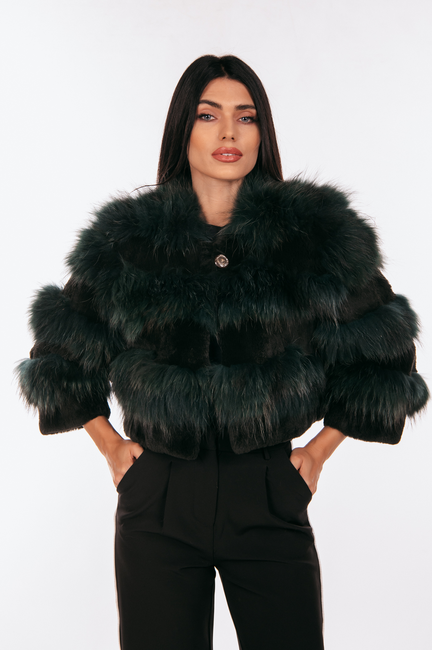 Κοντό τζάκετ από πράσινη γούνα αλεπούς