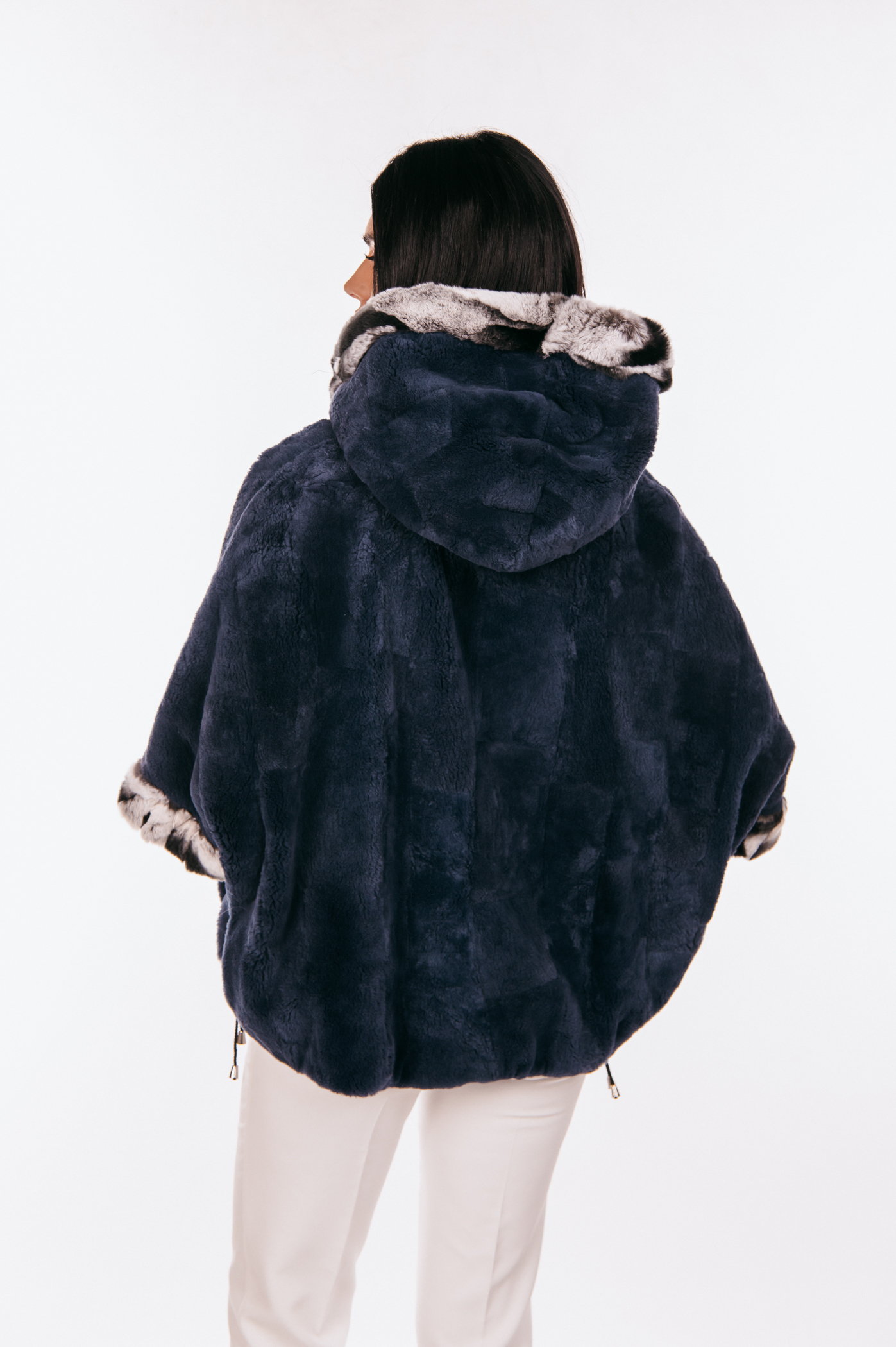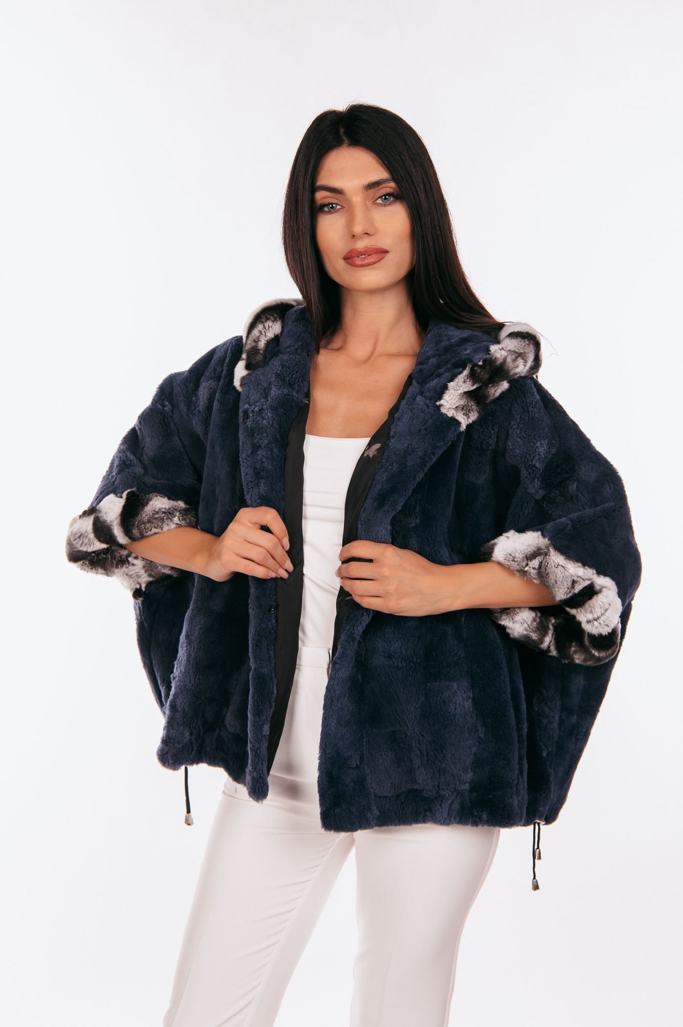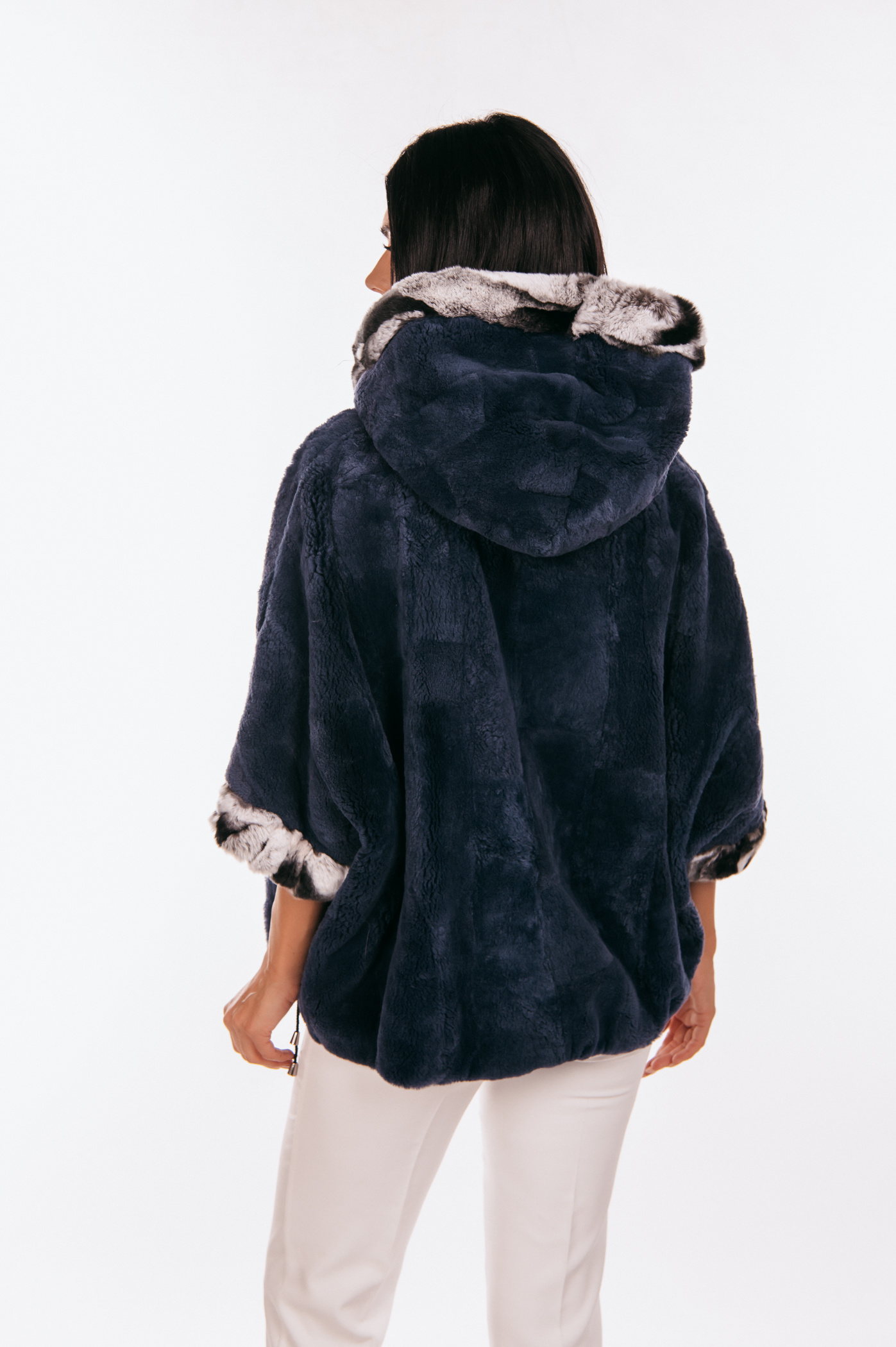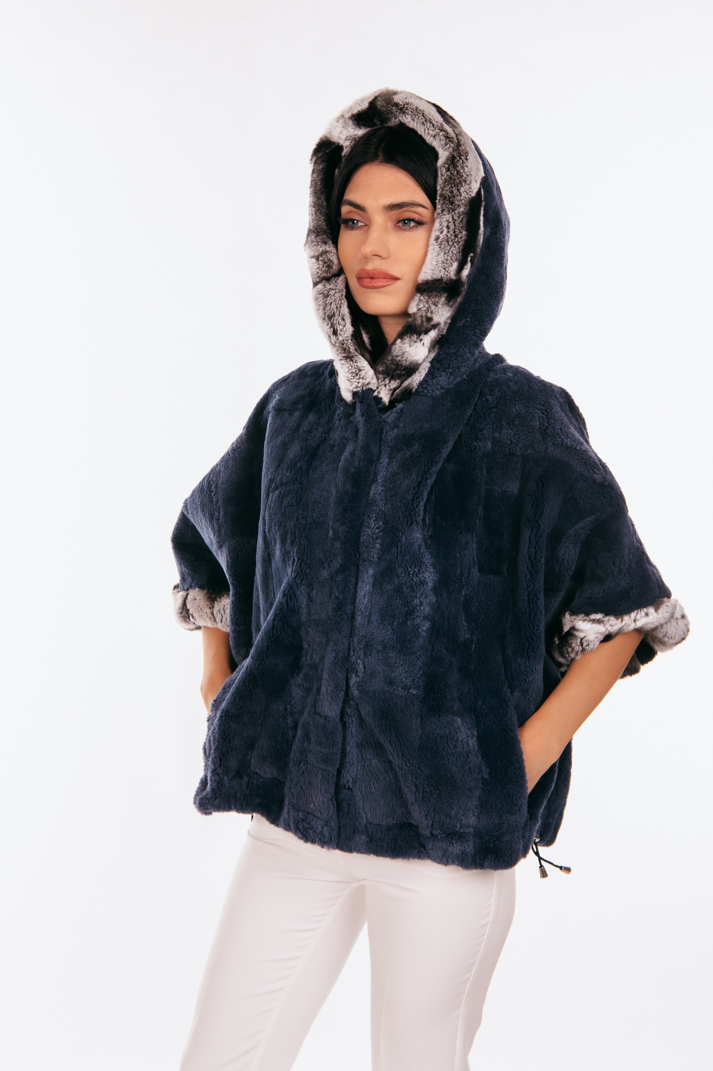 Ετόλ από μπλε γούνα κάστορα και τσιντσιλά με κουκούλα