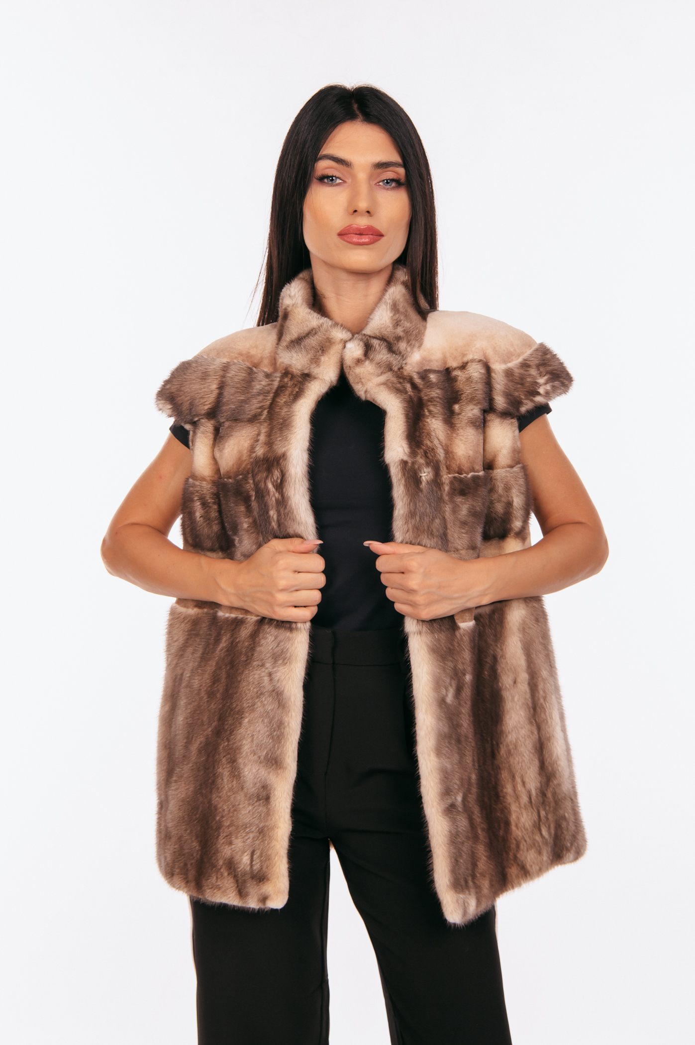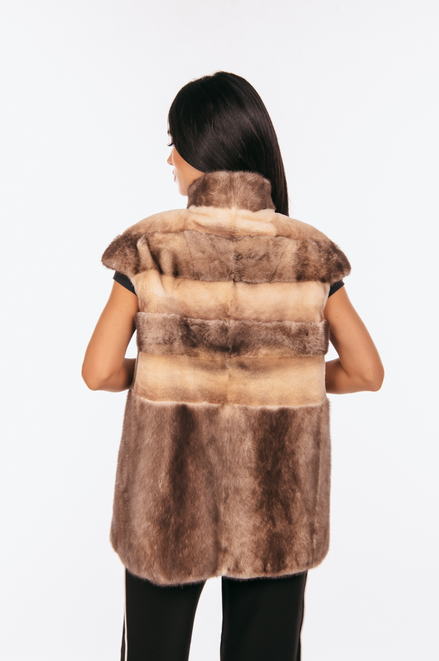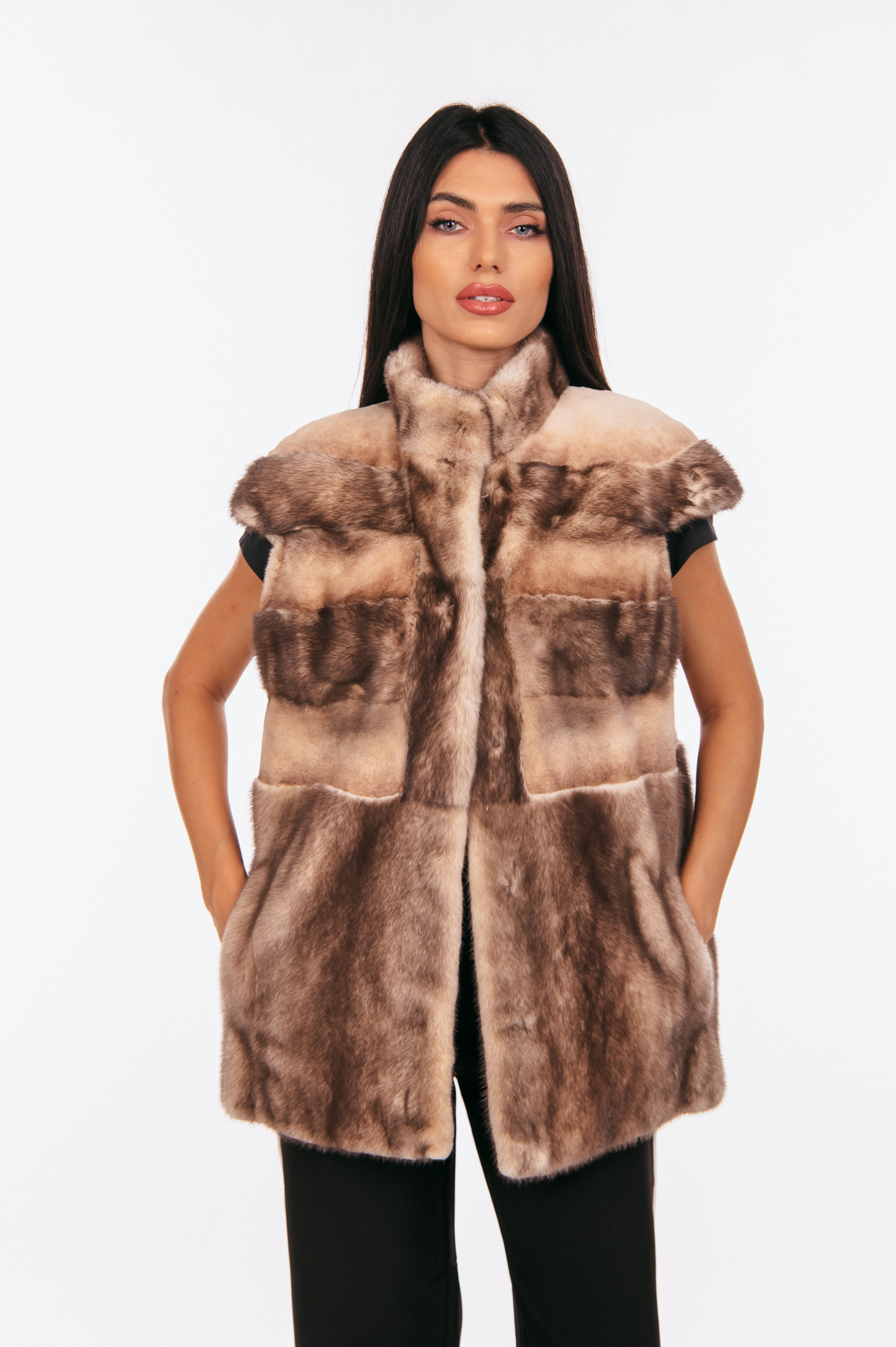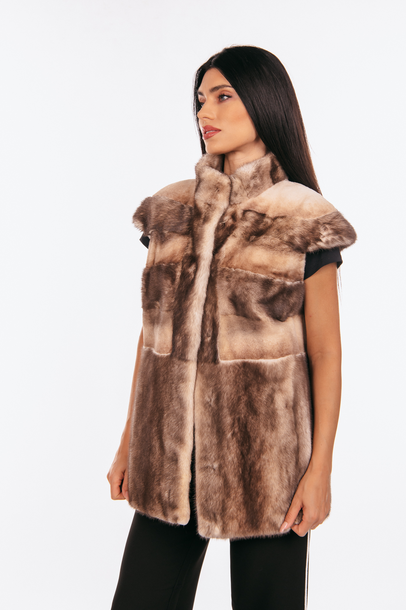 Γούνινο γιλέκο μινκ σε παλαινό και σκούρο καφέ χρώμα