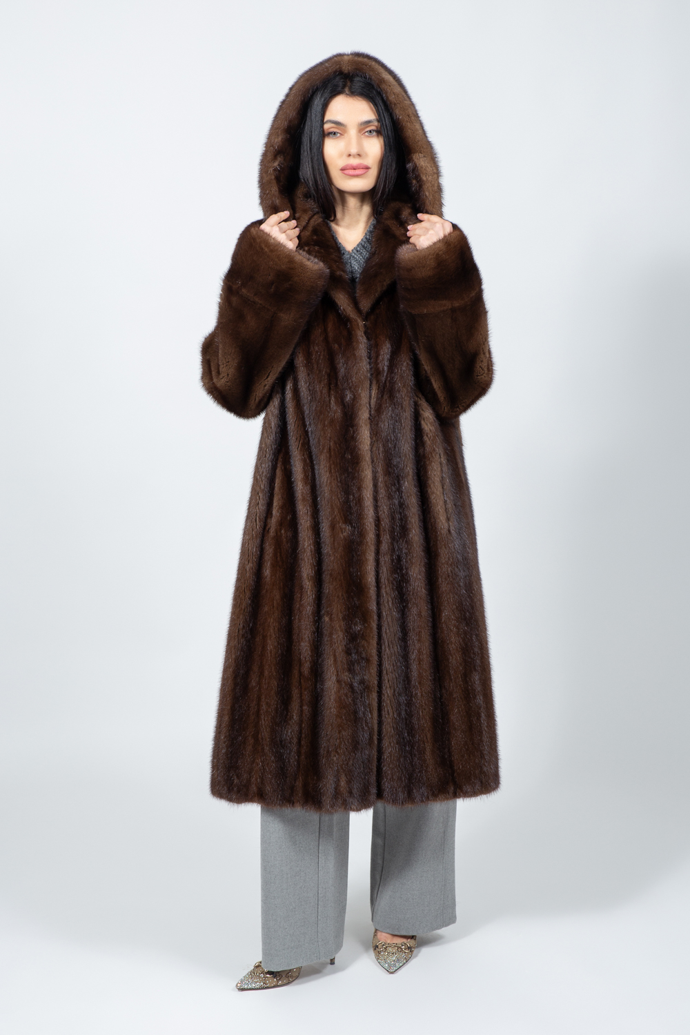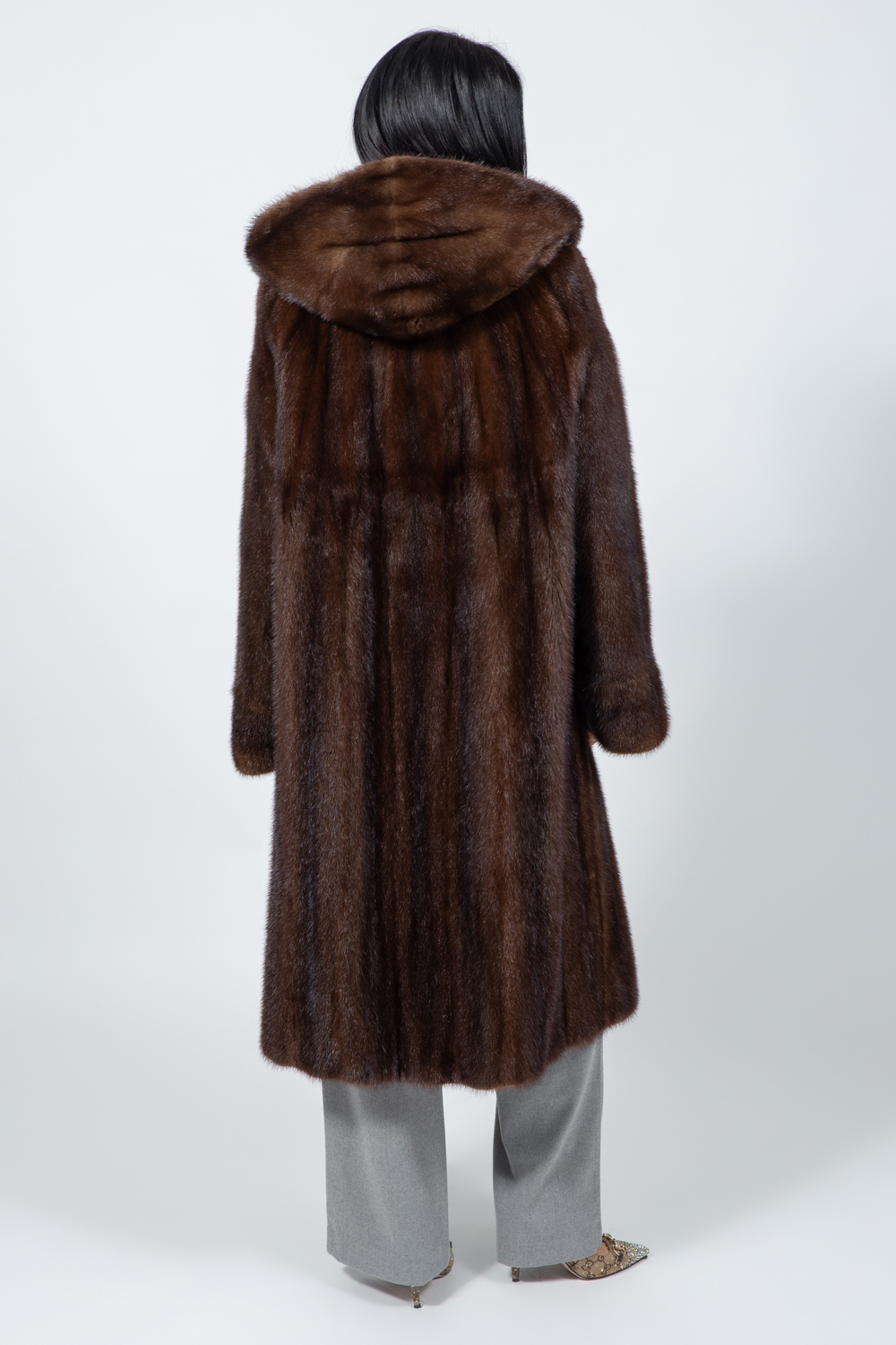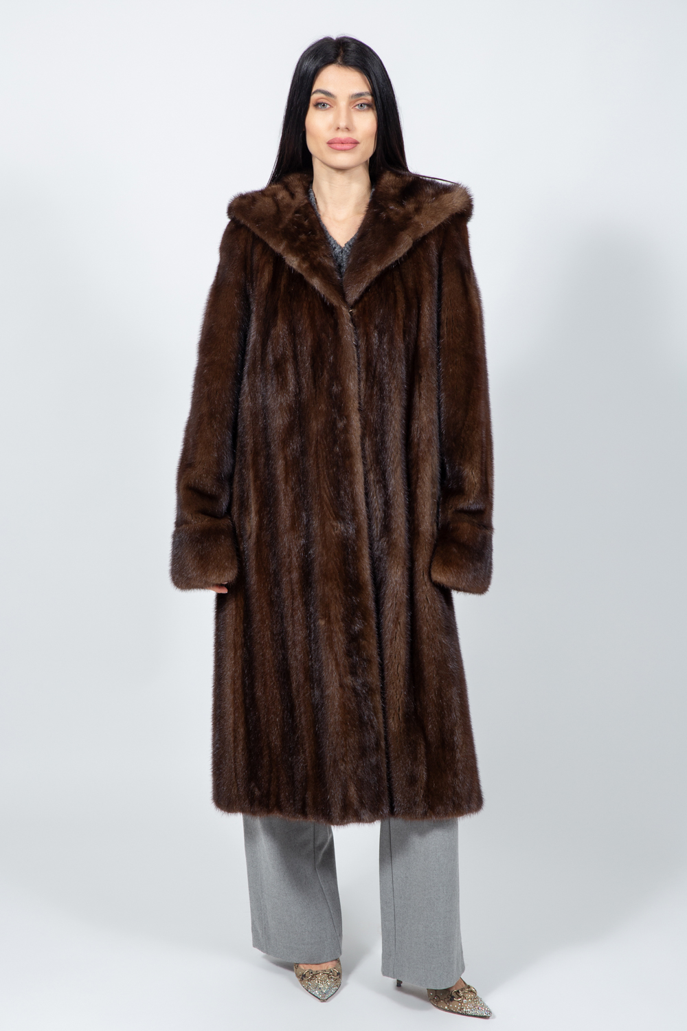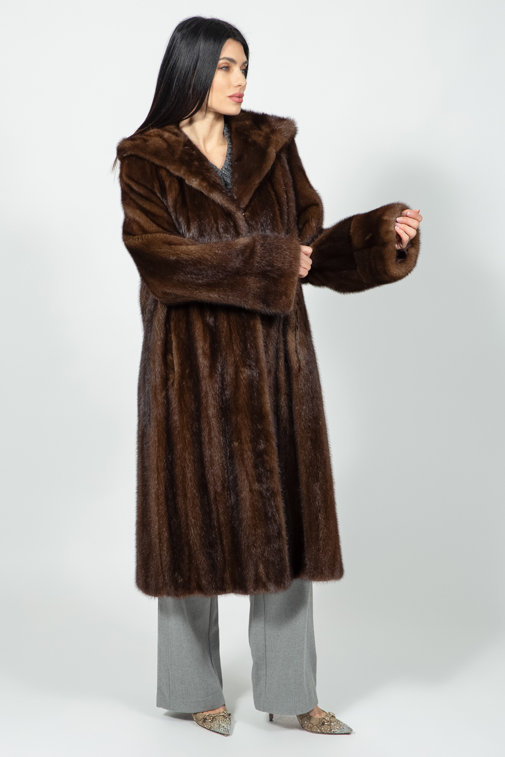 LONG BROWN MINK FUR JACKET