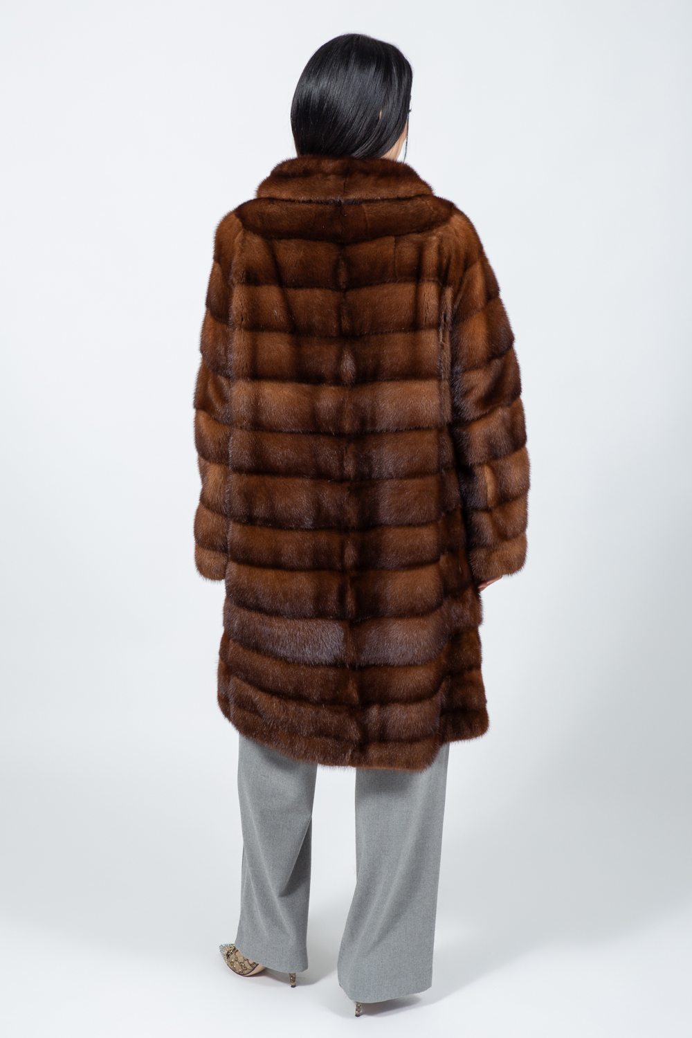 LONG BROWN MINK FUR JACKET