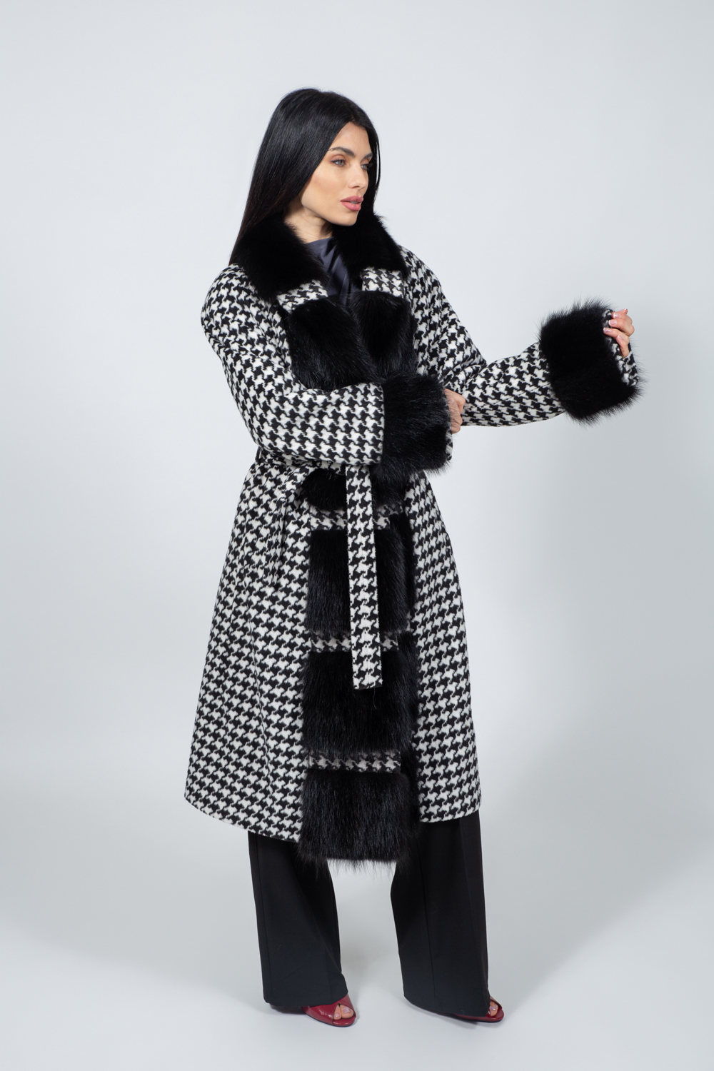 ΜΑΚΡΥ ΑΣΠΡΟΜΑΥΡΟ ΠΑΛΤΟ ΜΕ ΓΟΥΝΑ ΑΛΕΠΟΥΣ