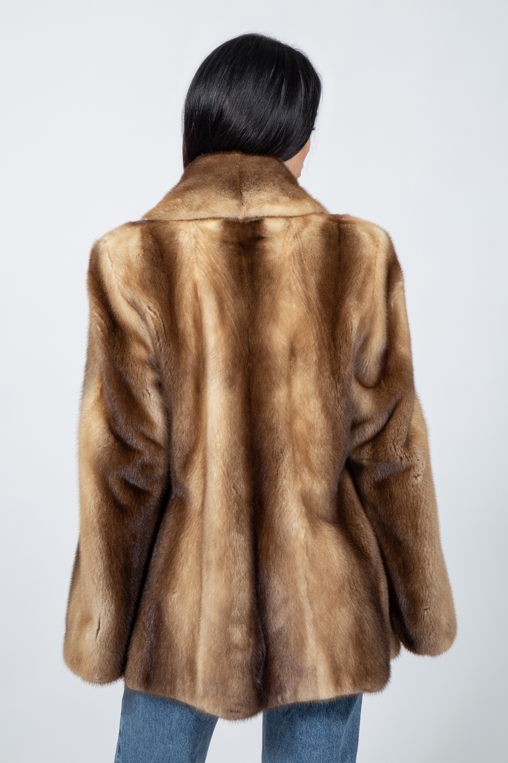 Μπουφάν από γνήσια γούνα βιζόν σε καφέ και μπεζ απόχρωση.