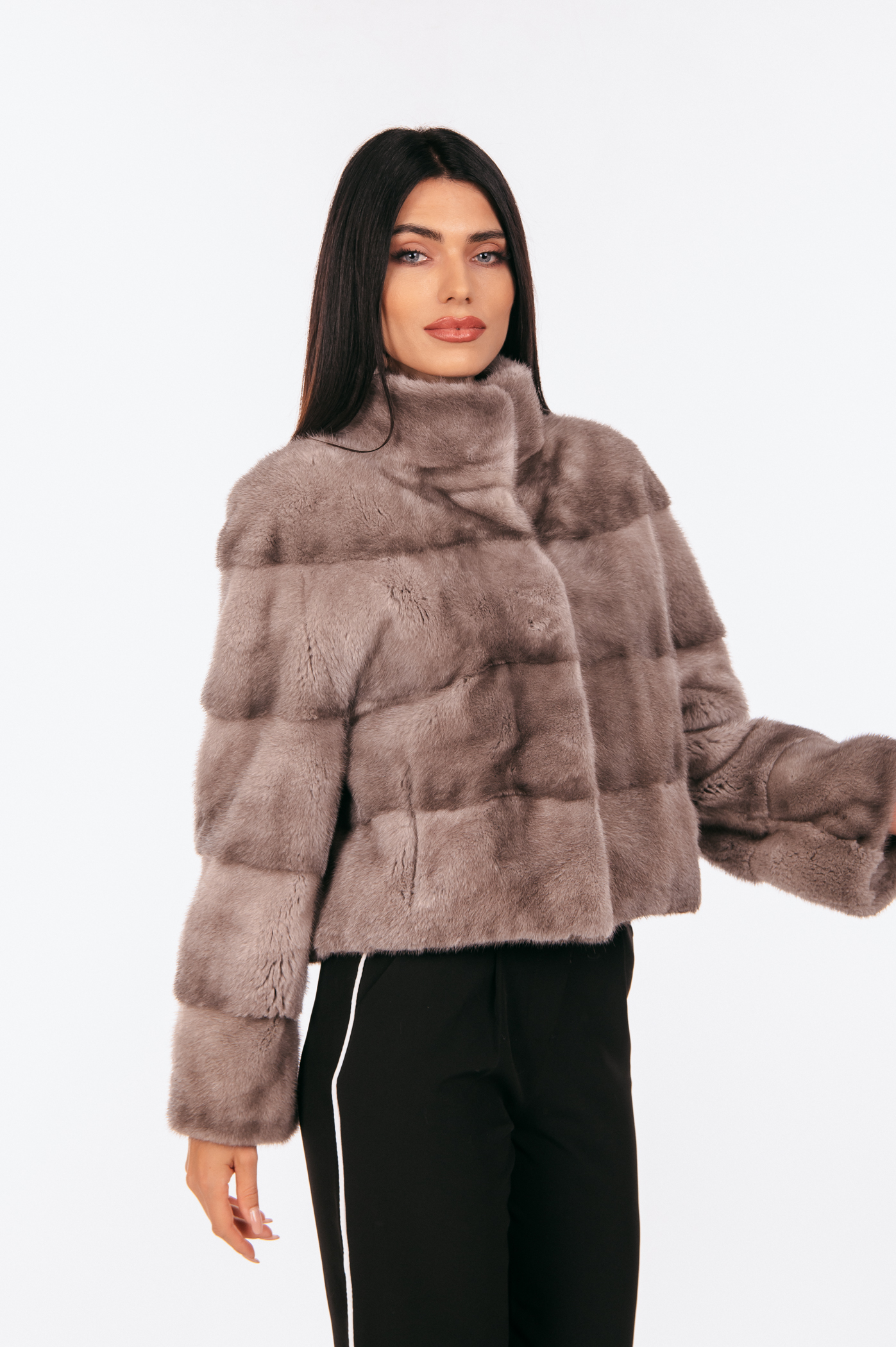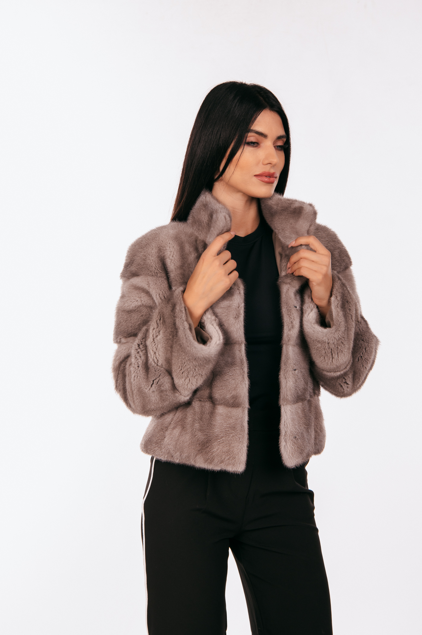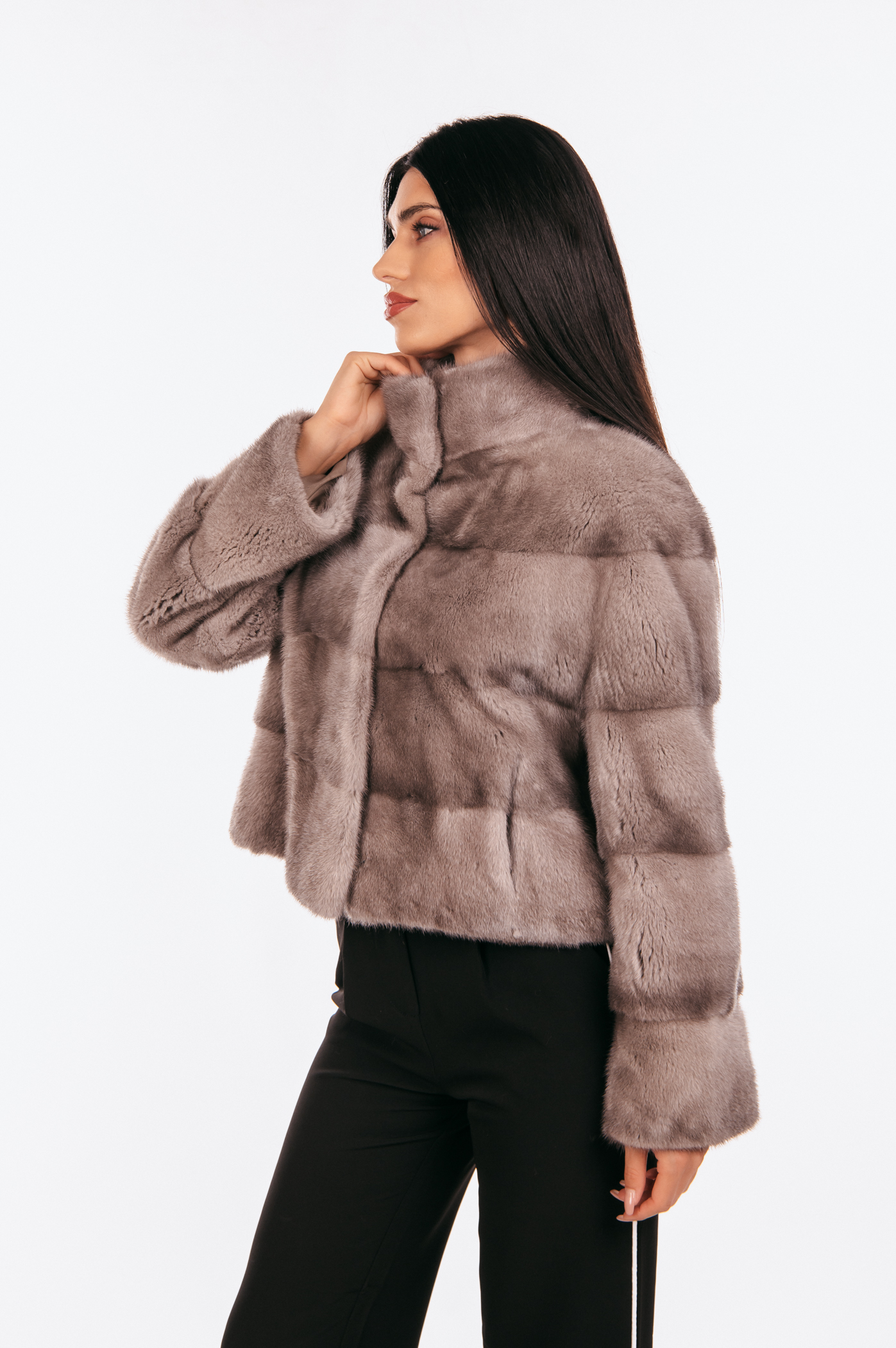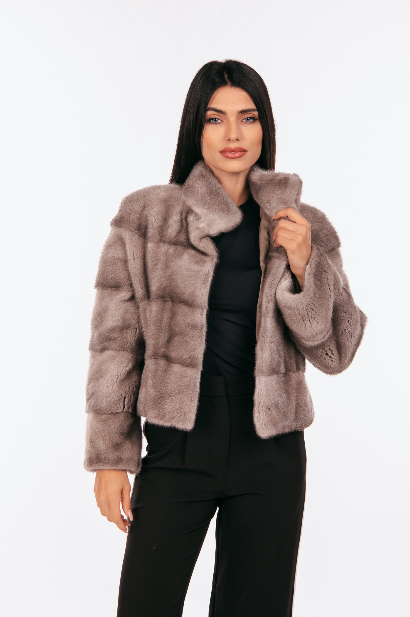 Κοντό τζάκετ από γκρι γούνα μινκ