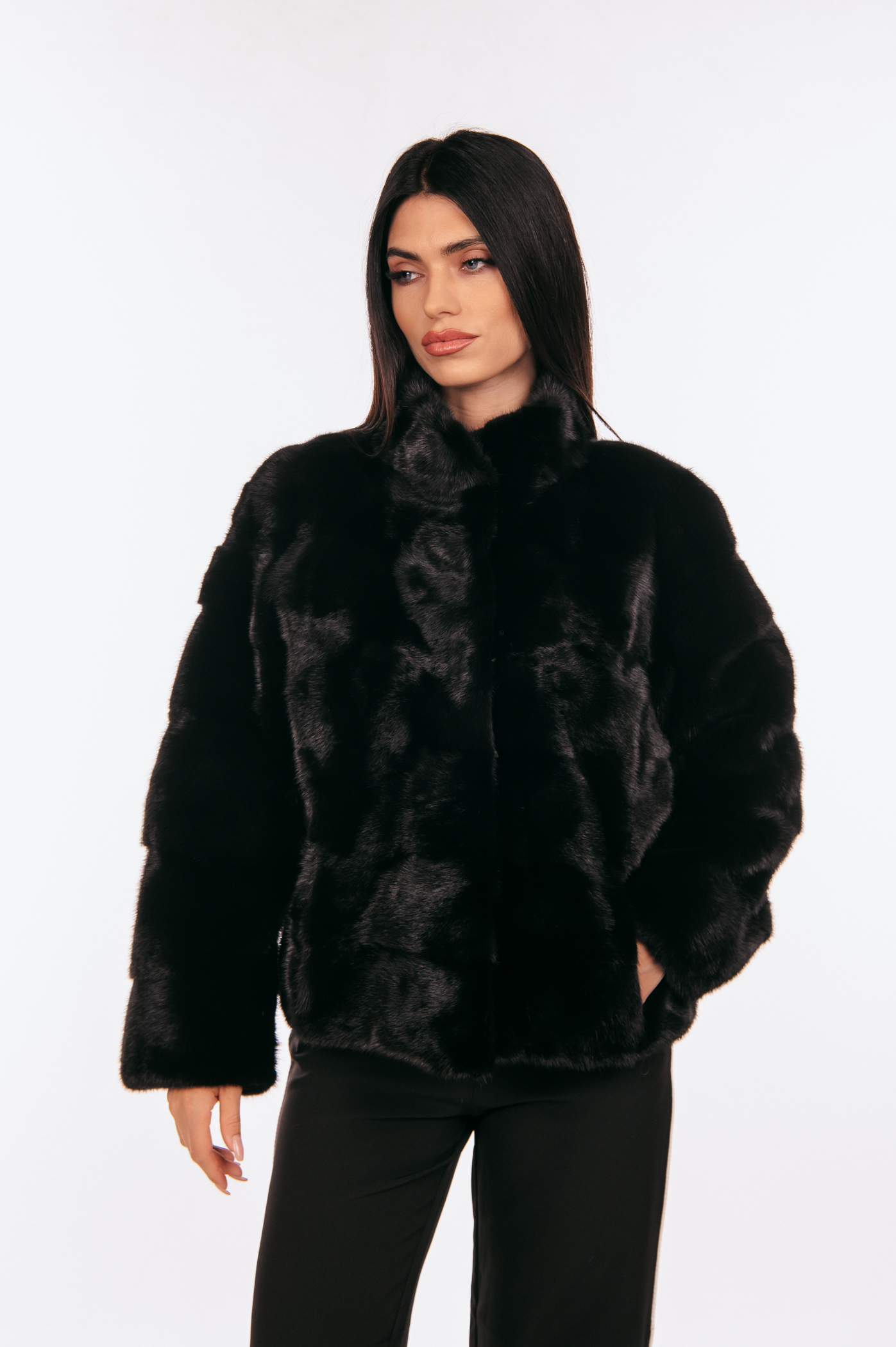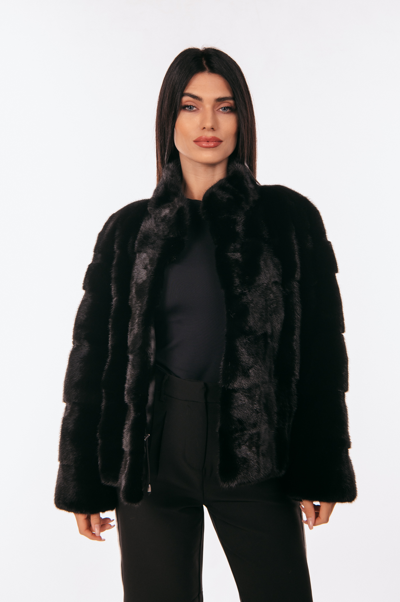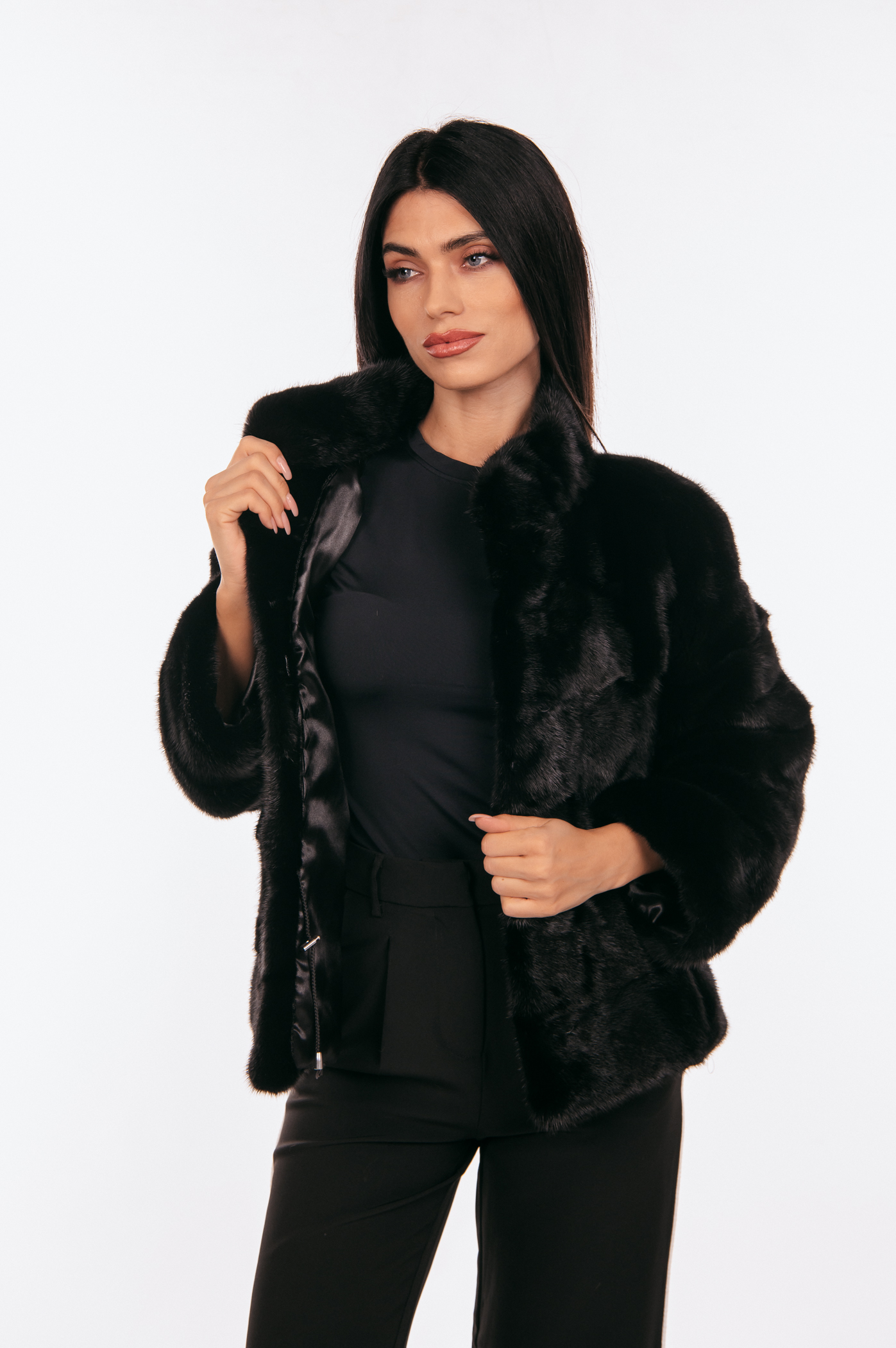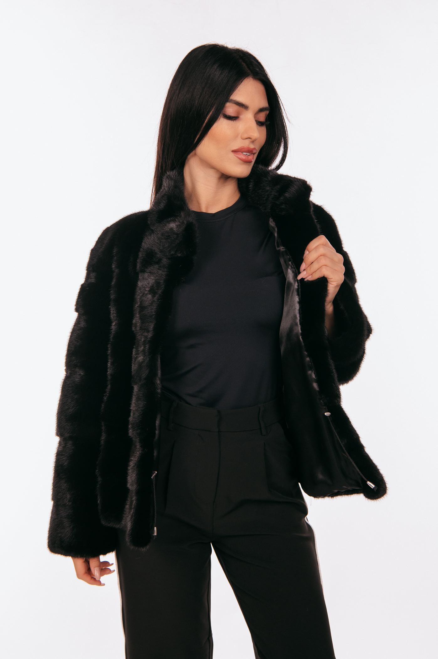 • Τζάκετ από αυθεντική γούνα μαύρης μινκ