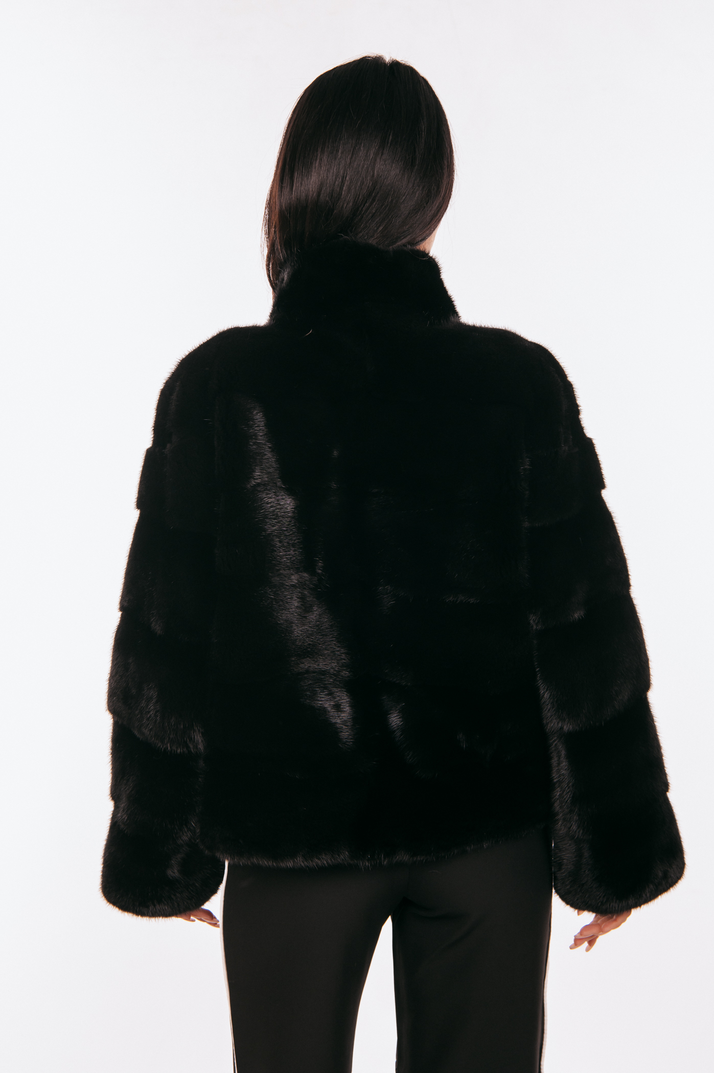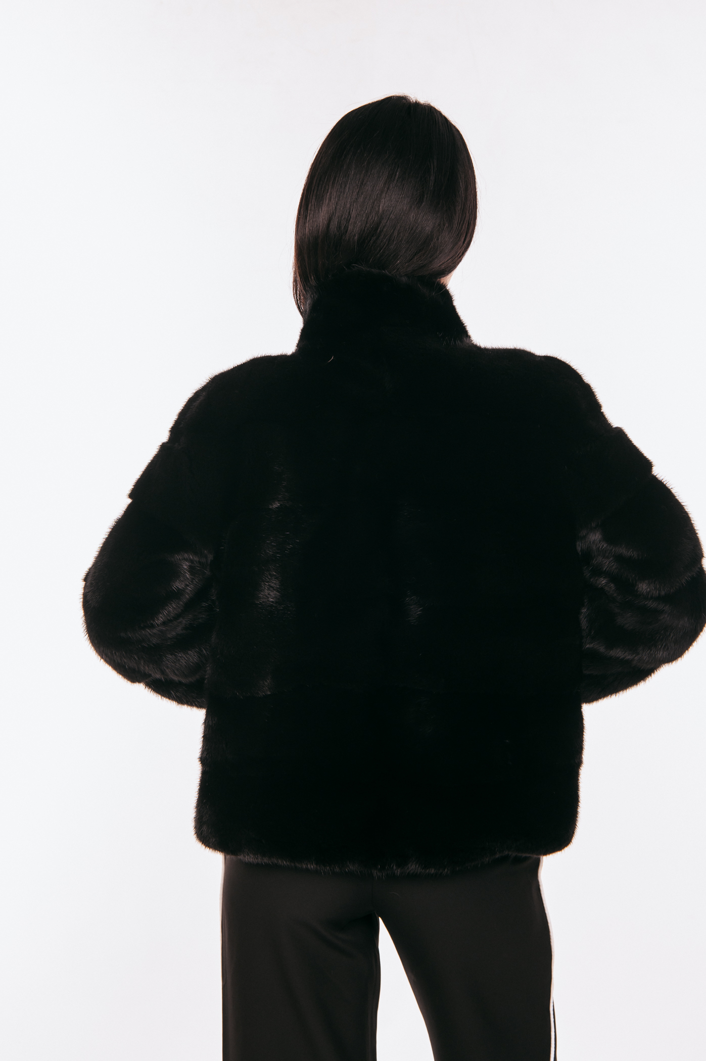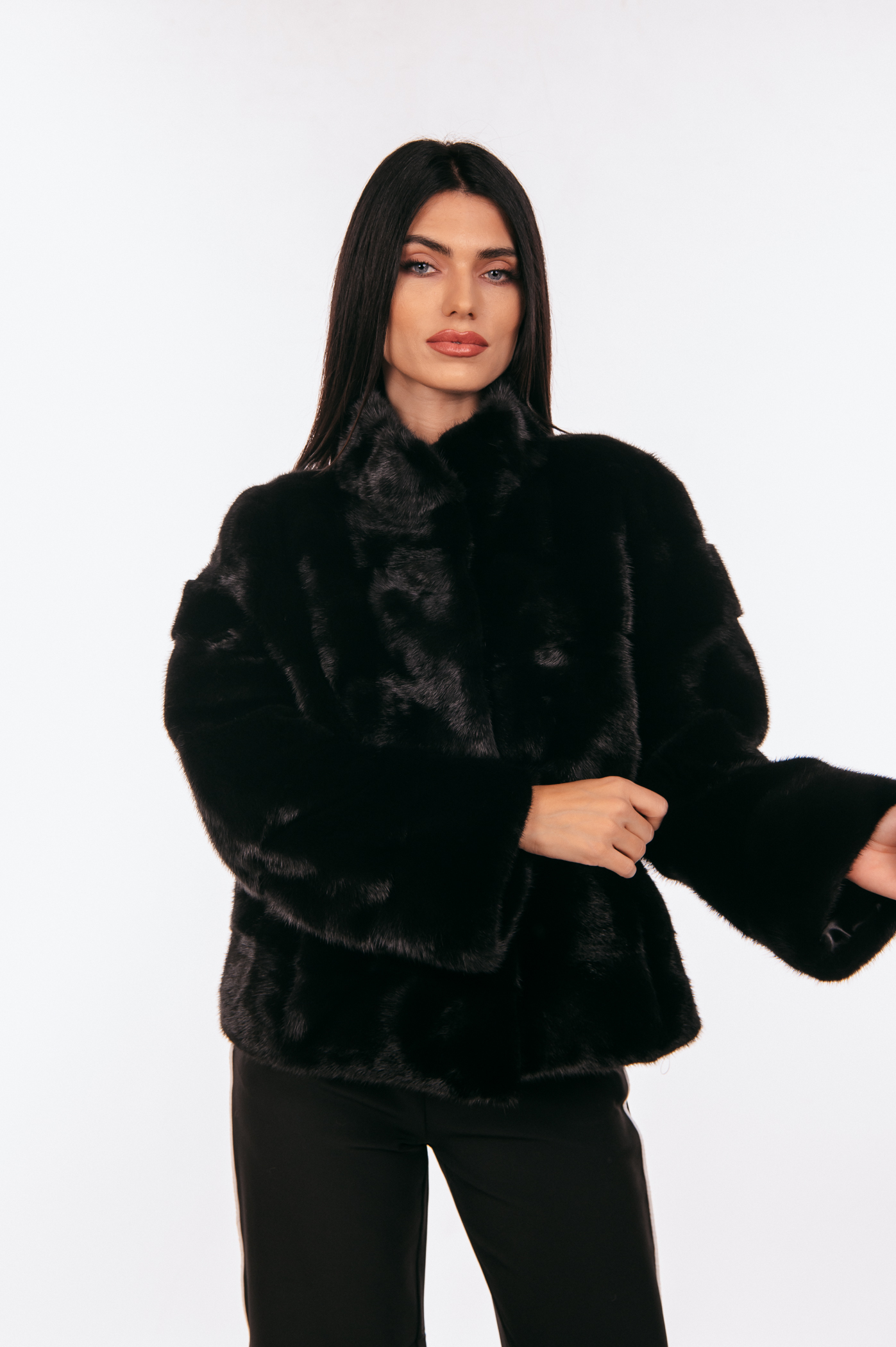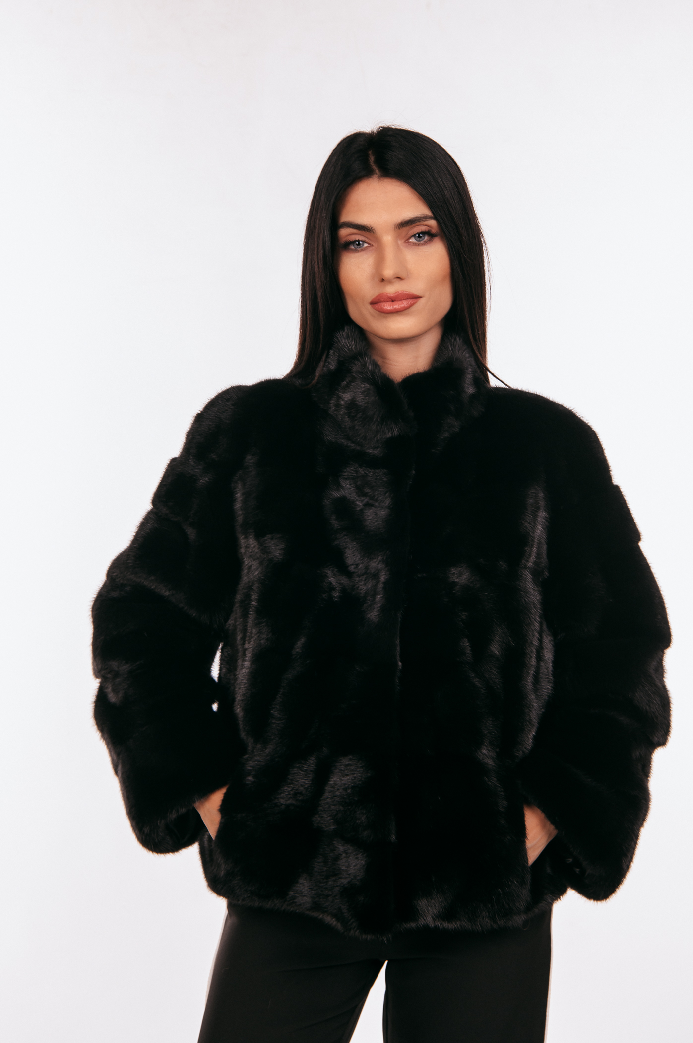 • Τζάκετ από αυθεντική γούνα μαύρης μινκ