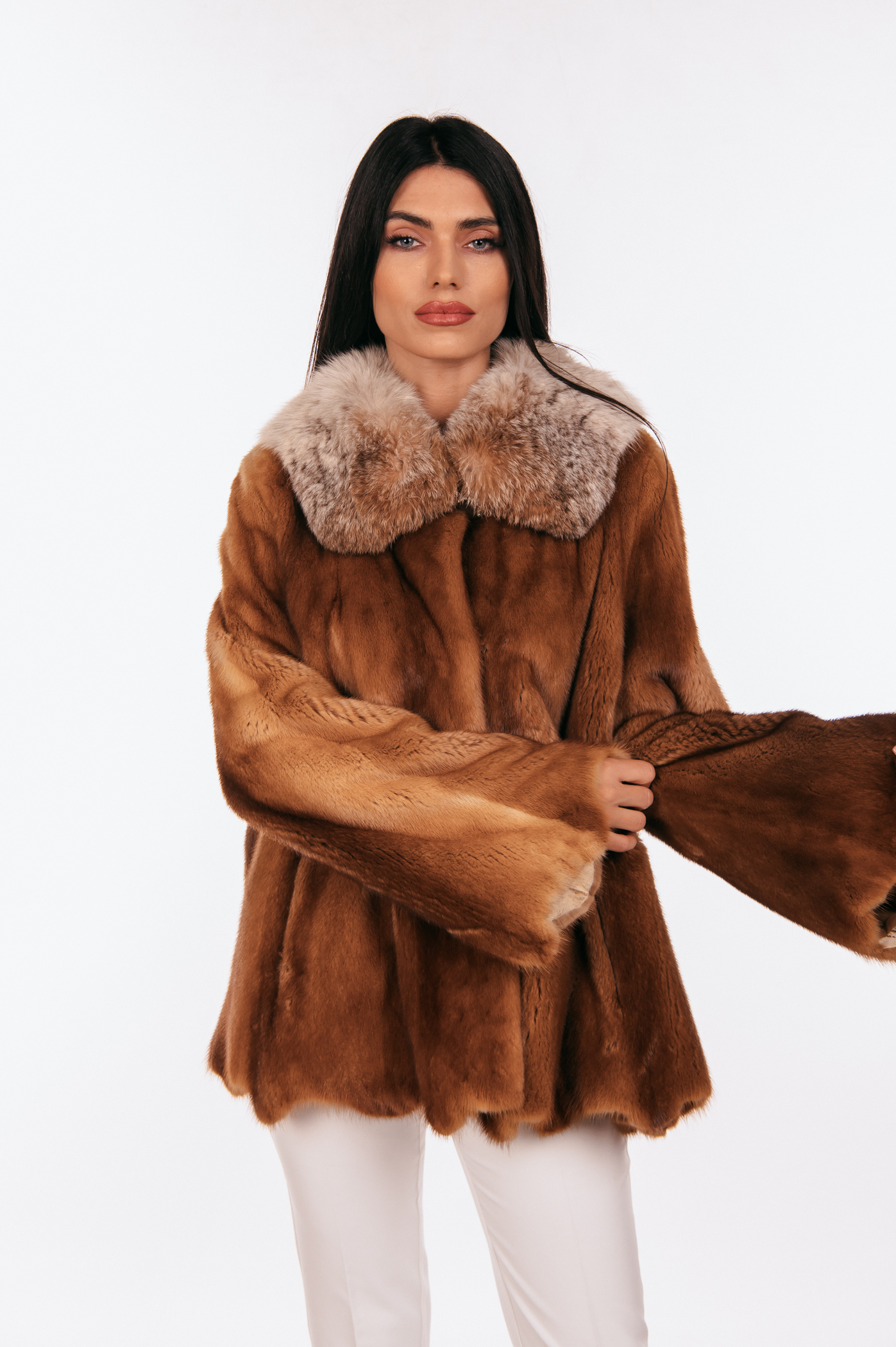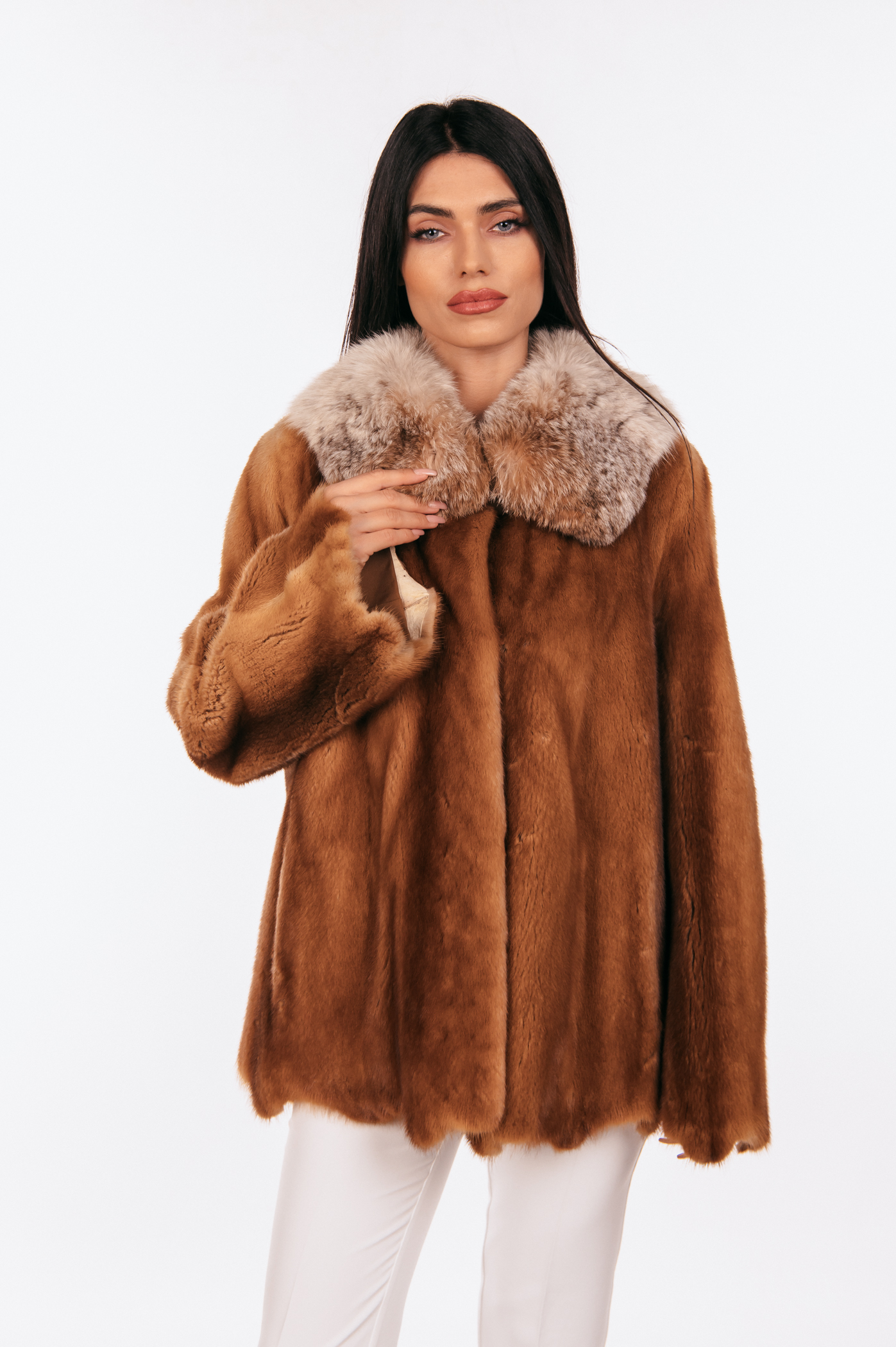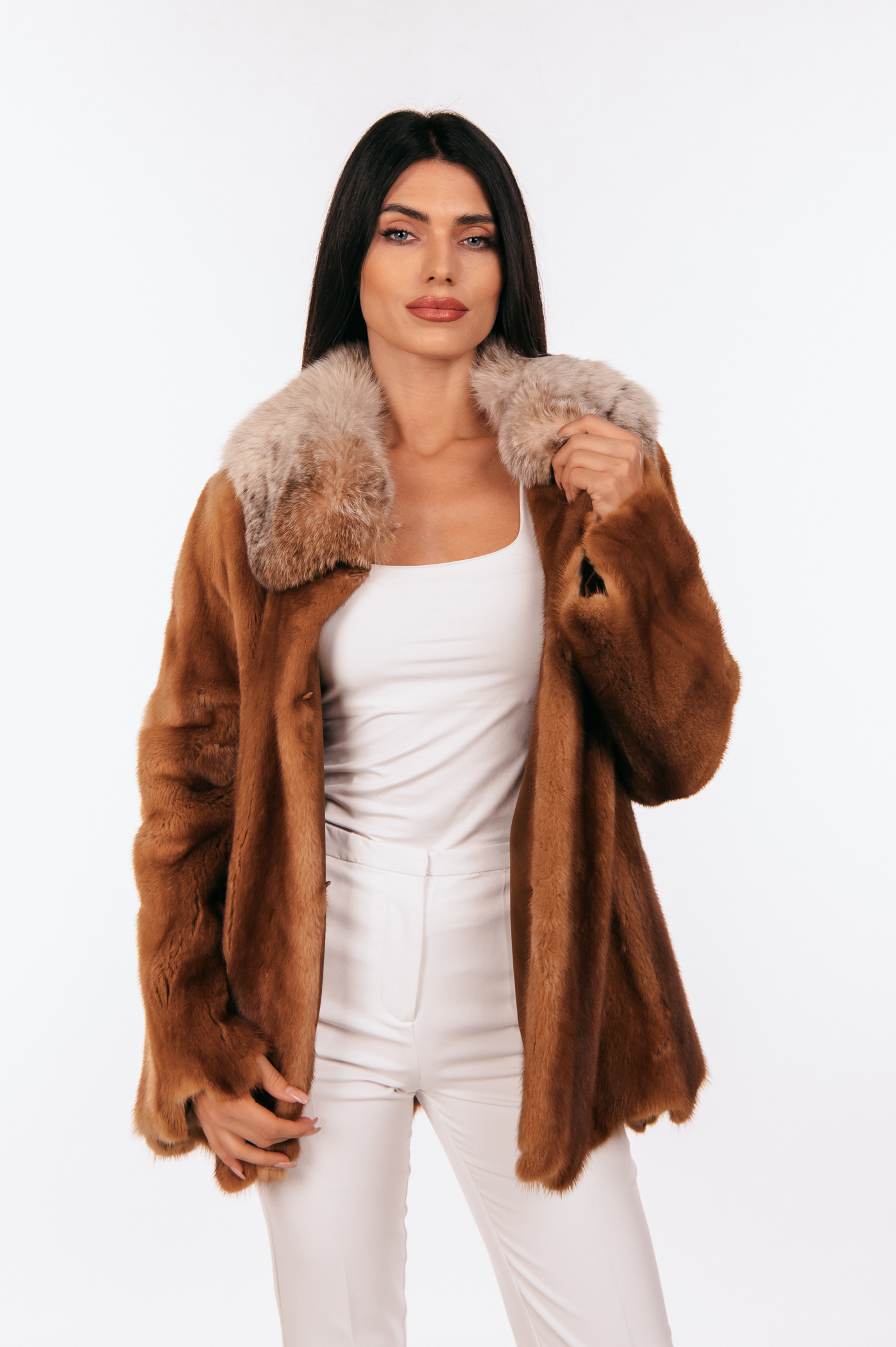 Τζάκετ από γούνα μινκ και αλεπούς σε απόχρωση κανέλας