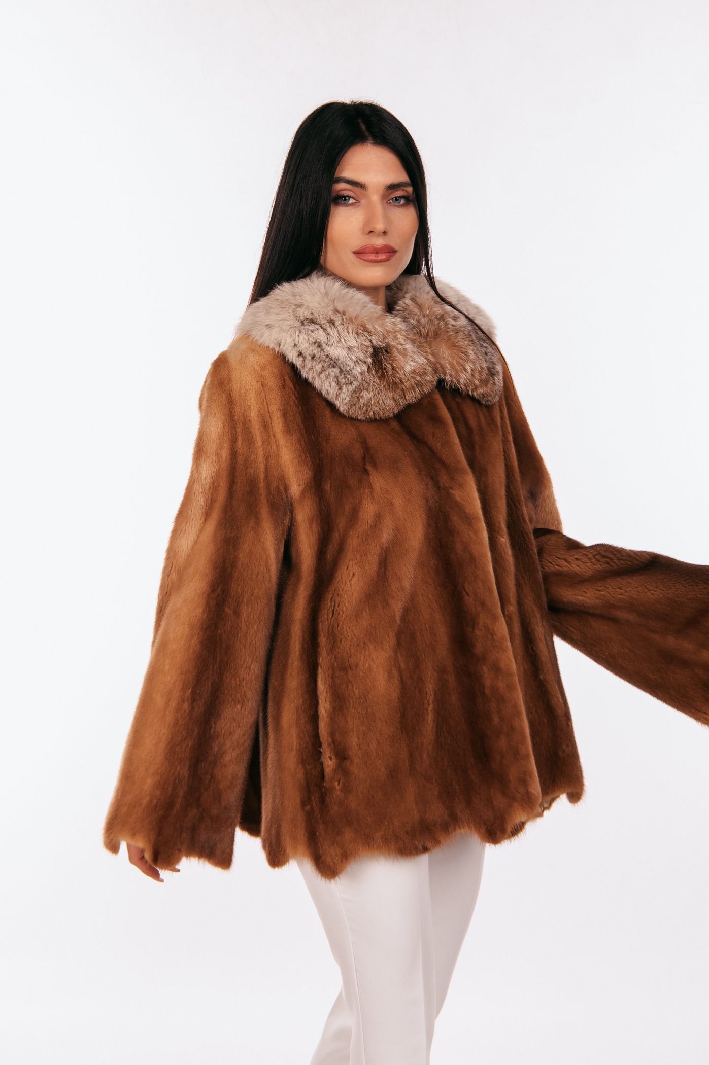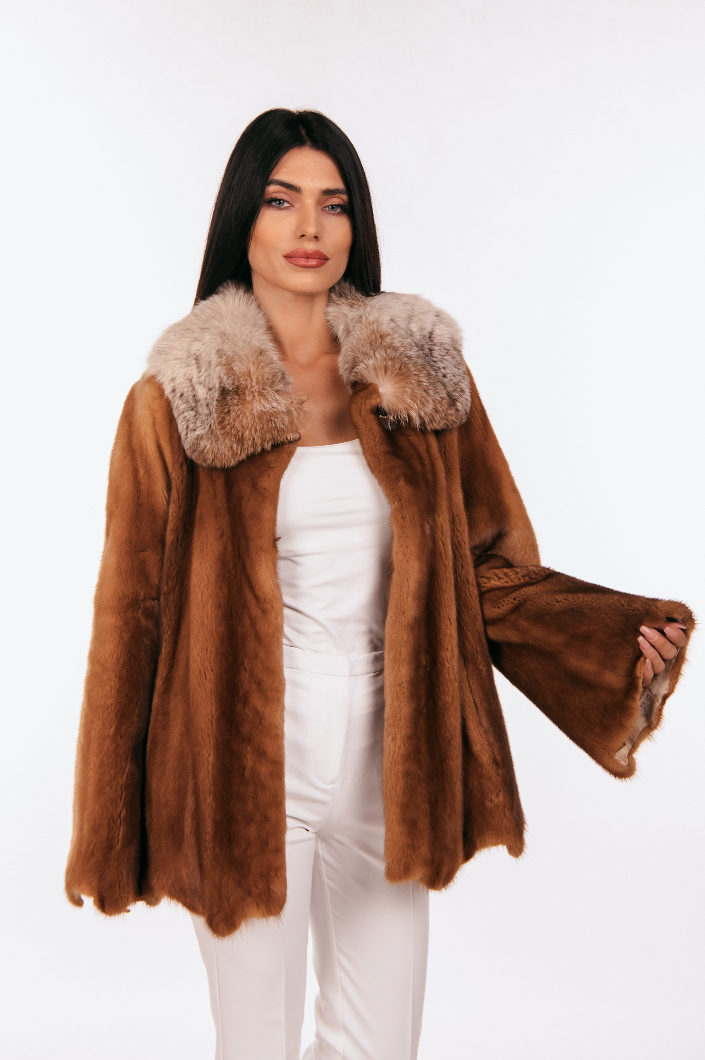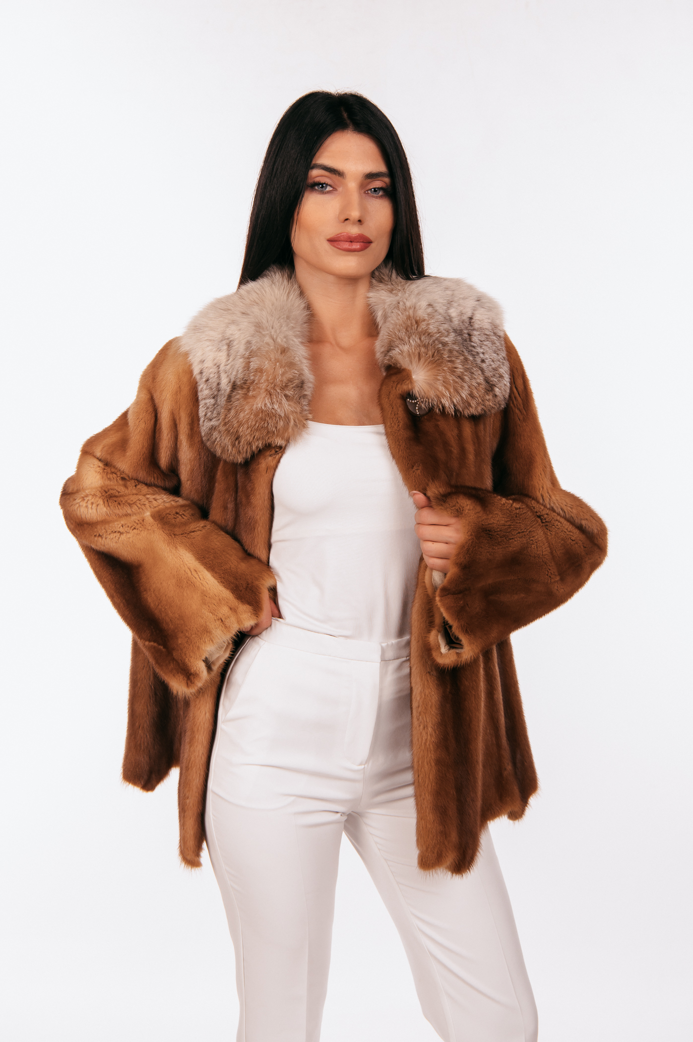 Τζάκετ από γούνα μινκ και αλεπούς σε απόχρωση κανέλας