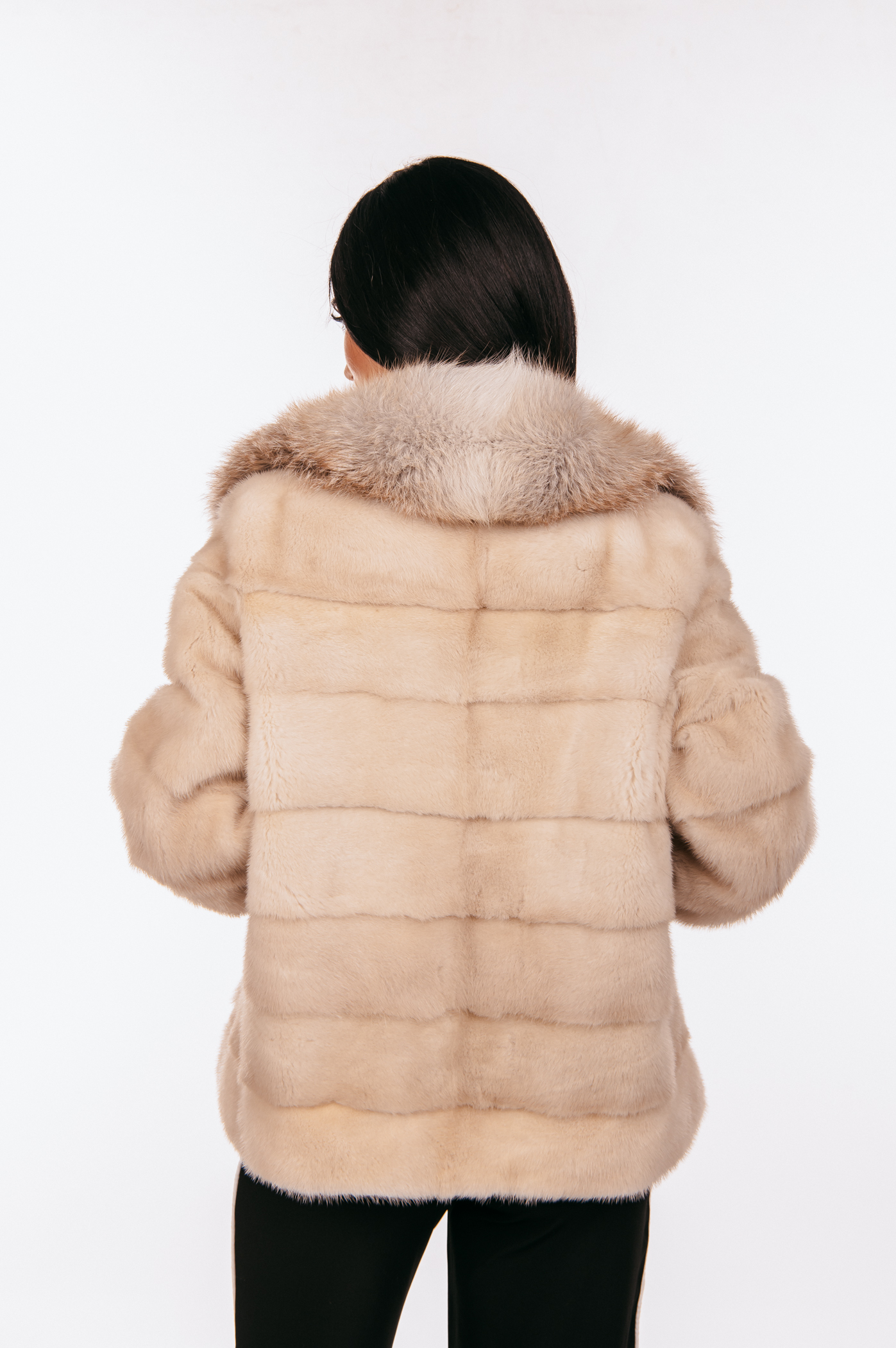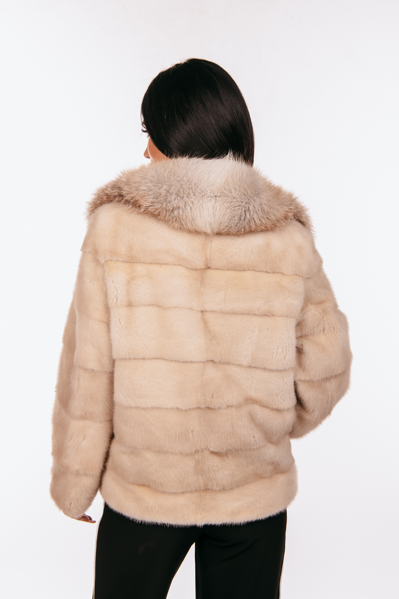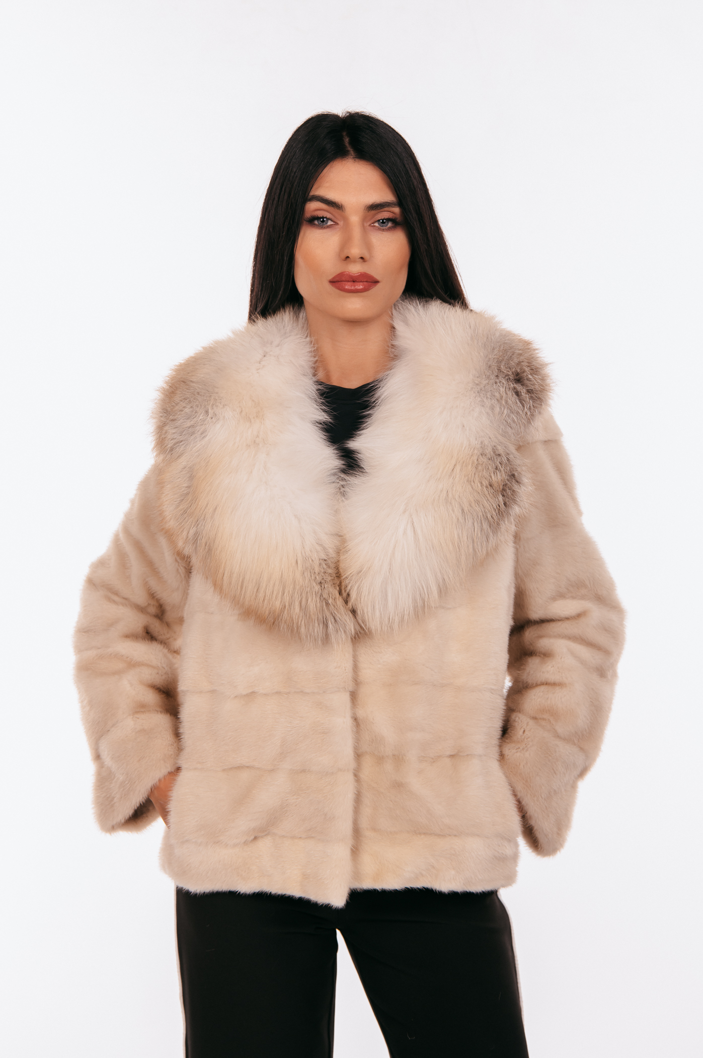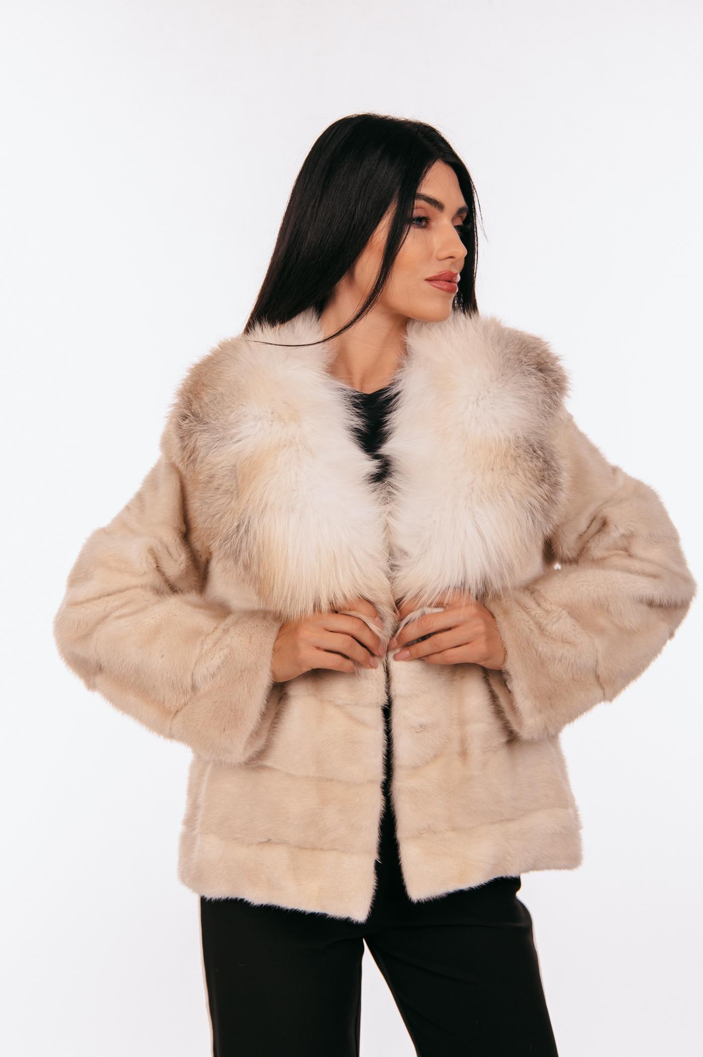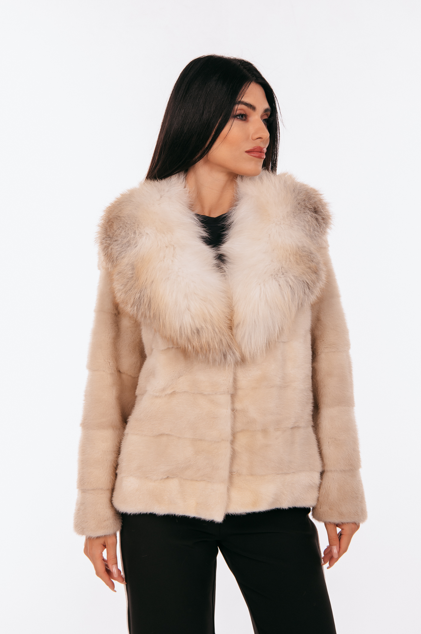 Κρεμ μπουφάν από βιζόν και γούνα αλεπούς
