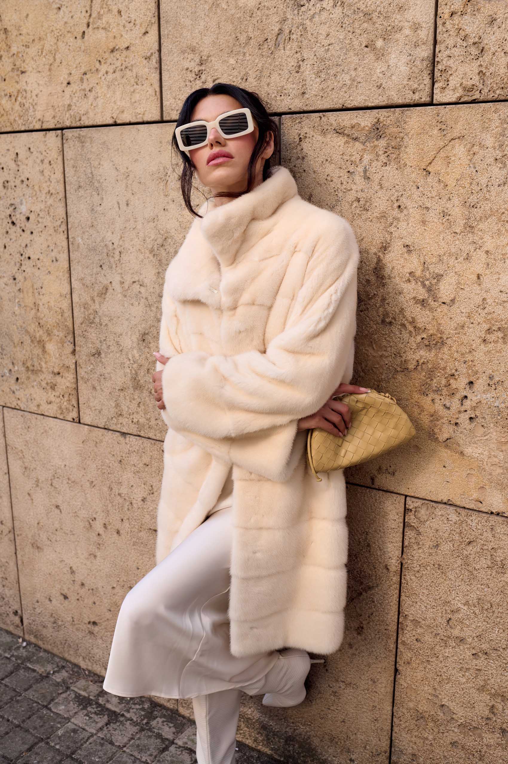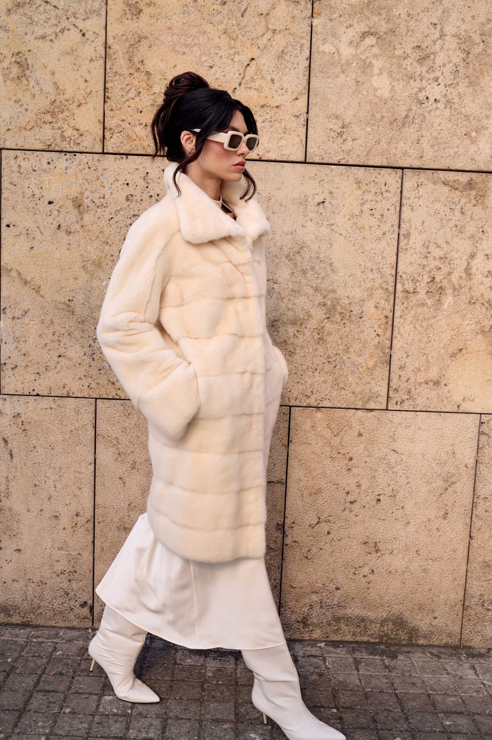 Τζάκετ από γούνα μινκ σε εκρού απόχρωση