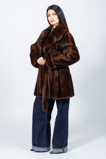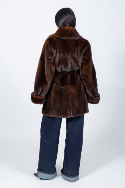 Τζάκετ από καφέ γούνα μίνκ