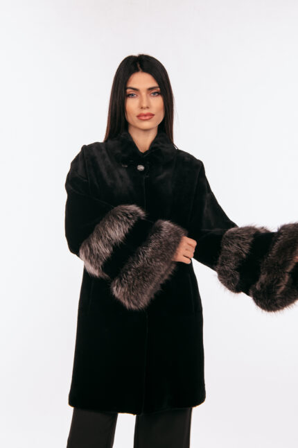 Γούνινο μπουφάν μαύρο και ασημί από βιζόν & αλεπού