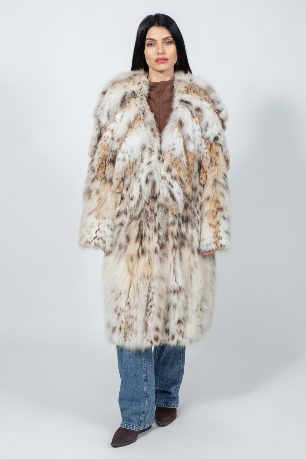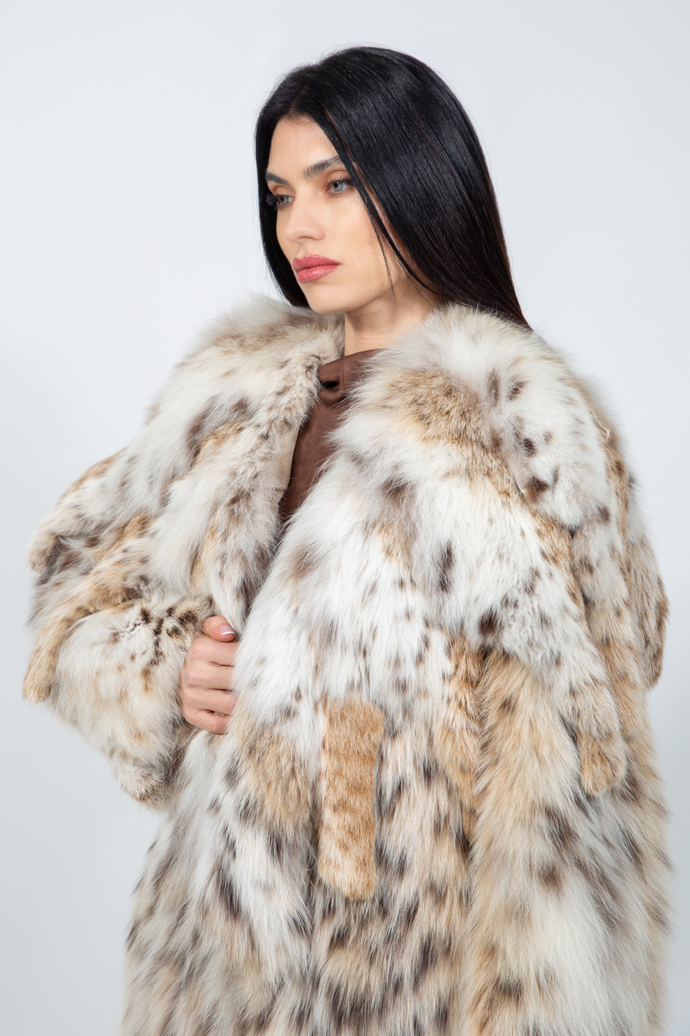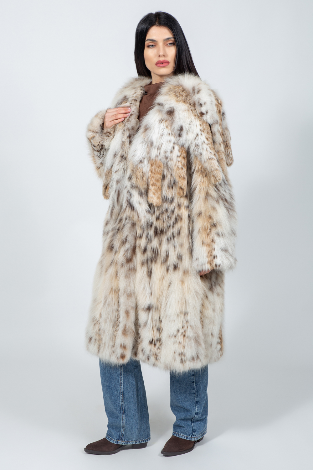 Μακρύ μπουφάν από γούνα λύγκα.