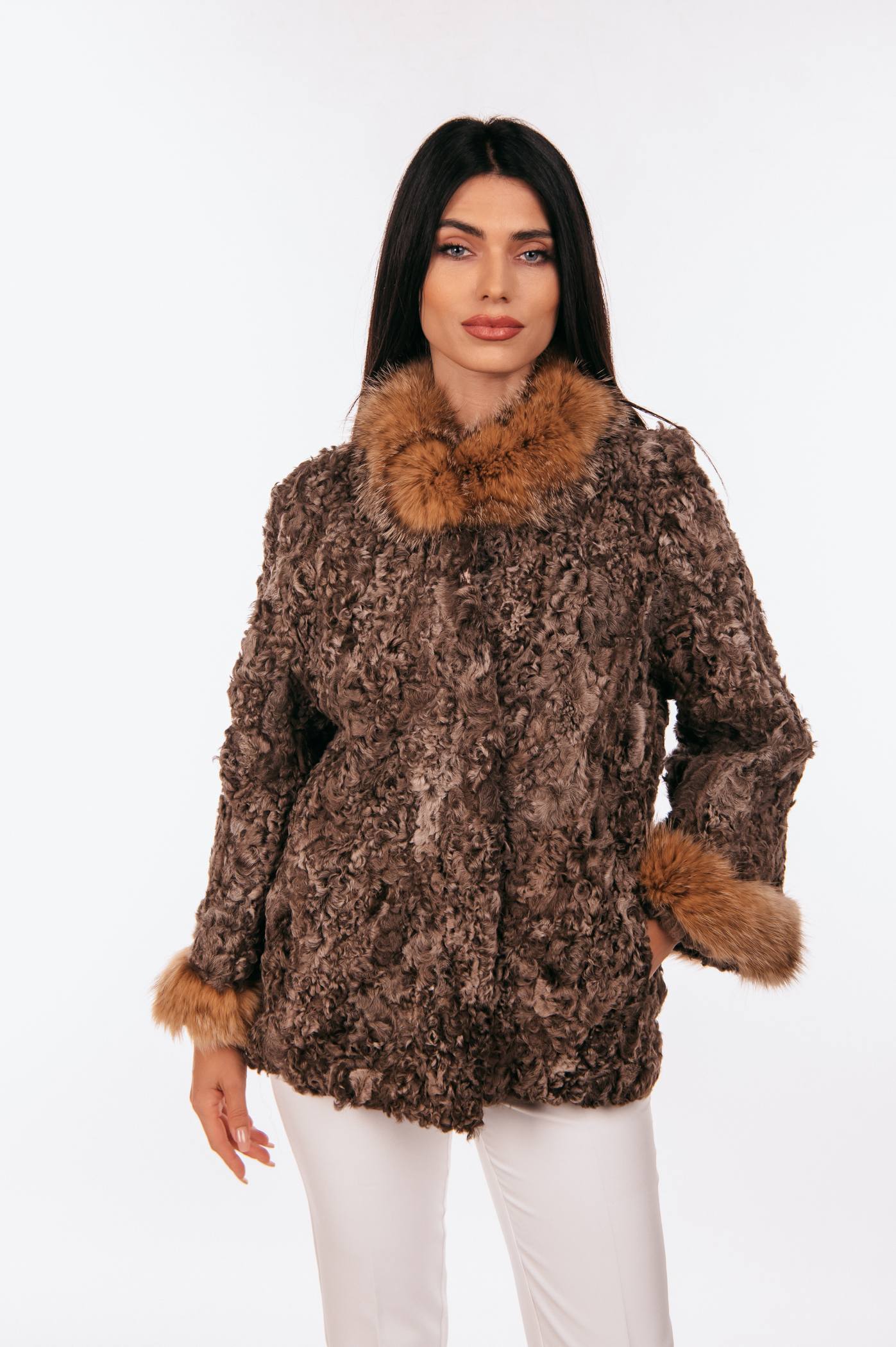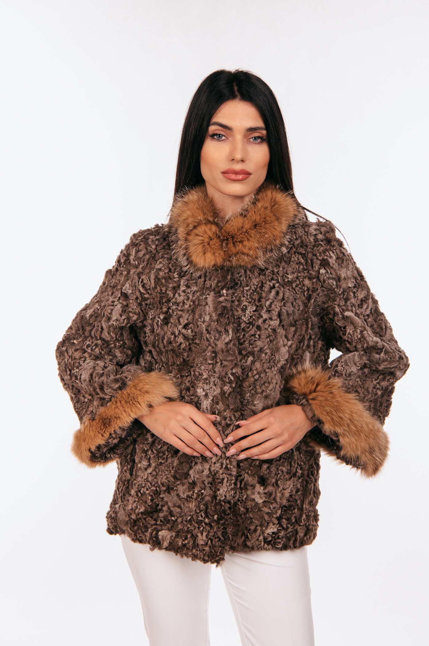 BEIGE SHORT ASTRAKHAN AND FOX FUR JACKET