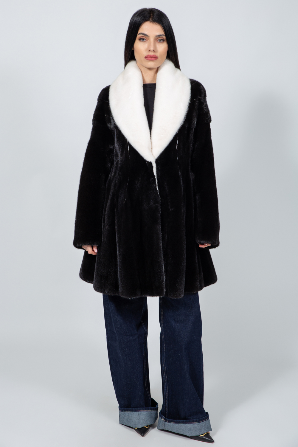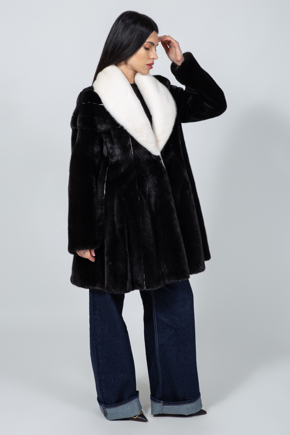 BLACK AND WHITE MINK FUR JACKET