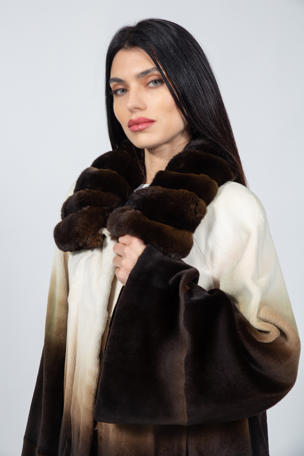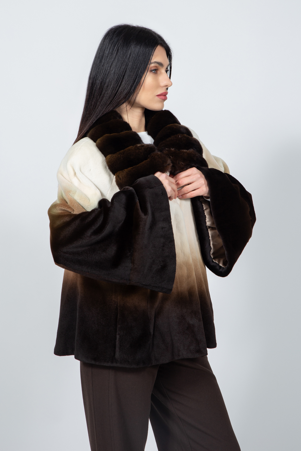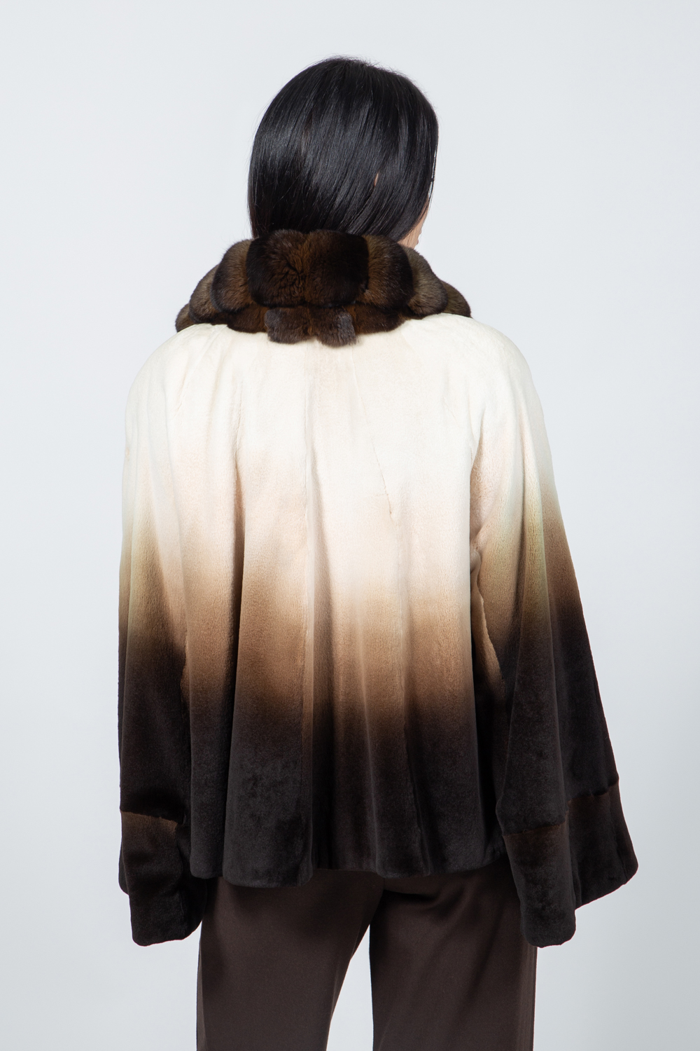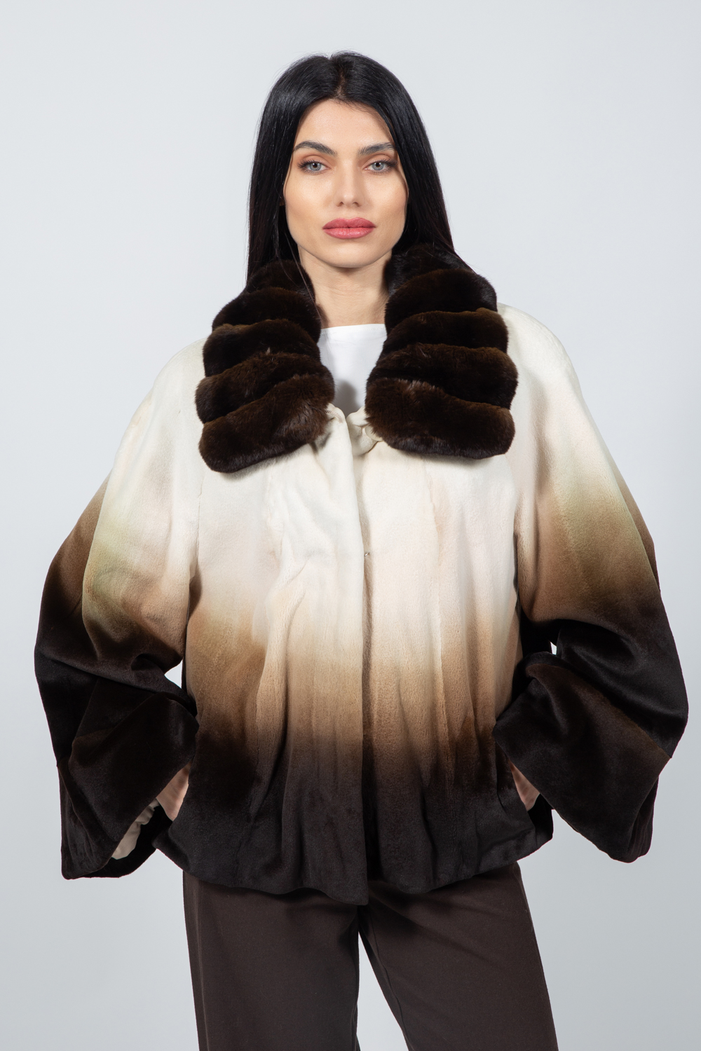 CREAM AND BROWN MINK AND CHINCHILLA FUR JACKET